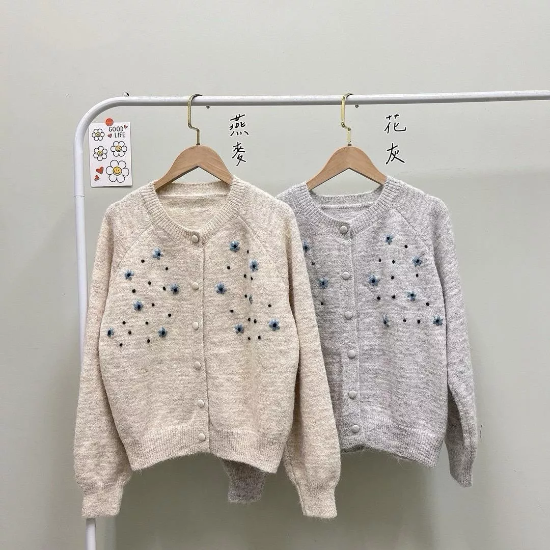 冬日甜心小花刺繡排釦毛衣 (2色)