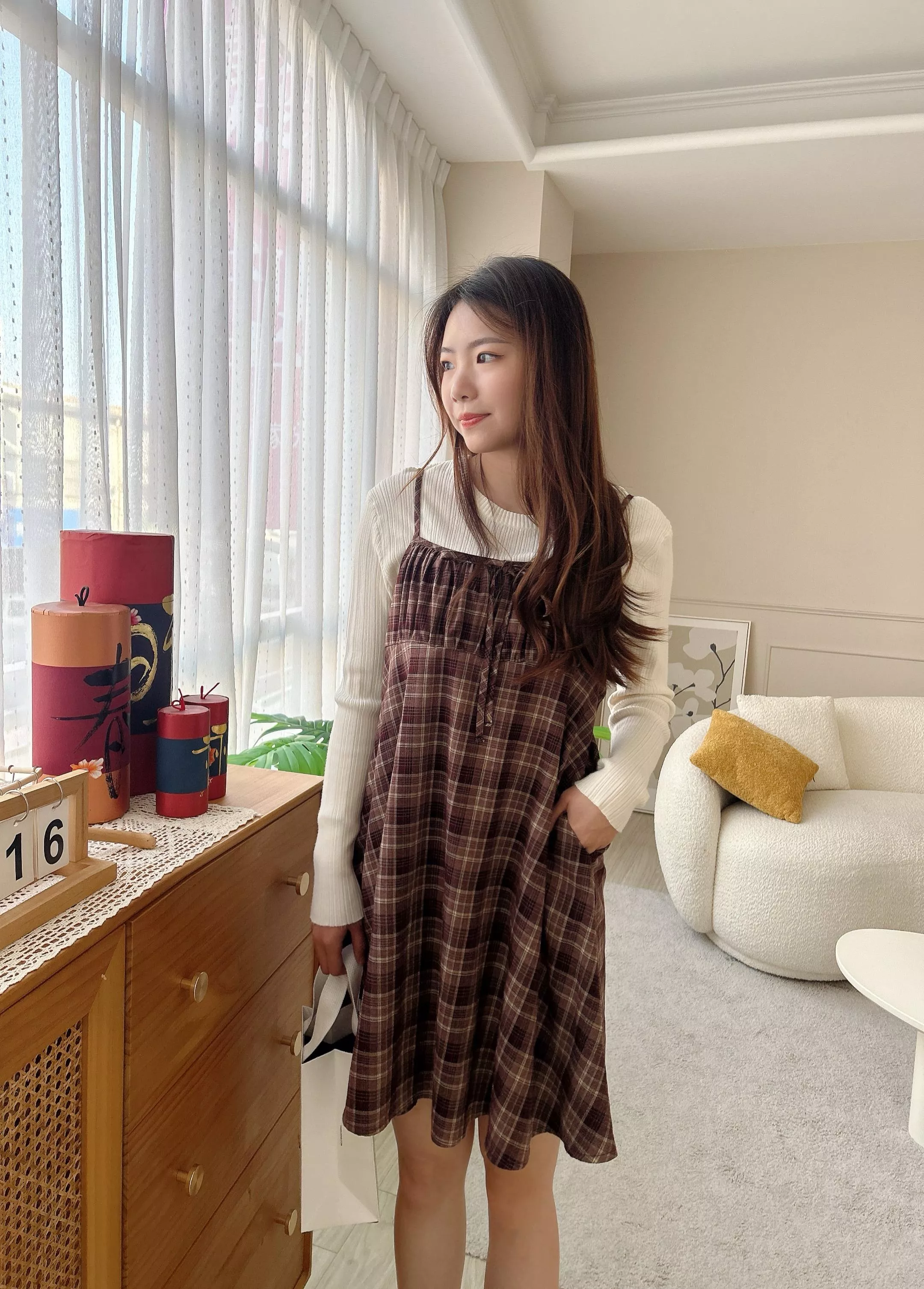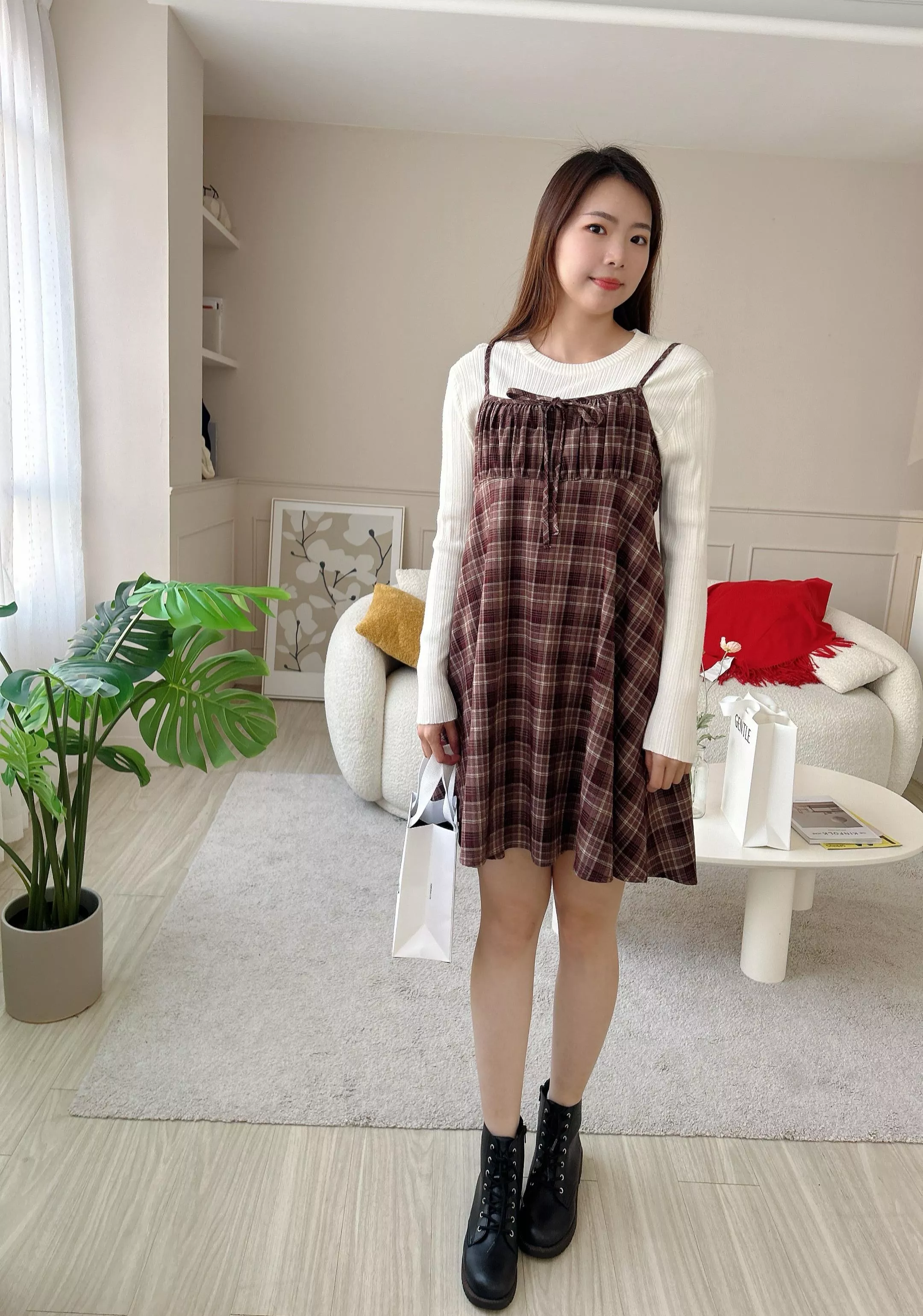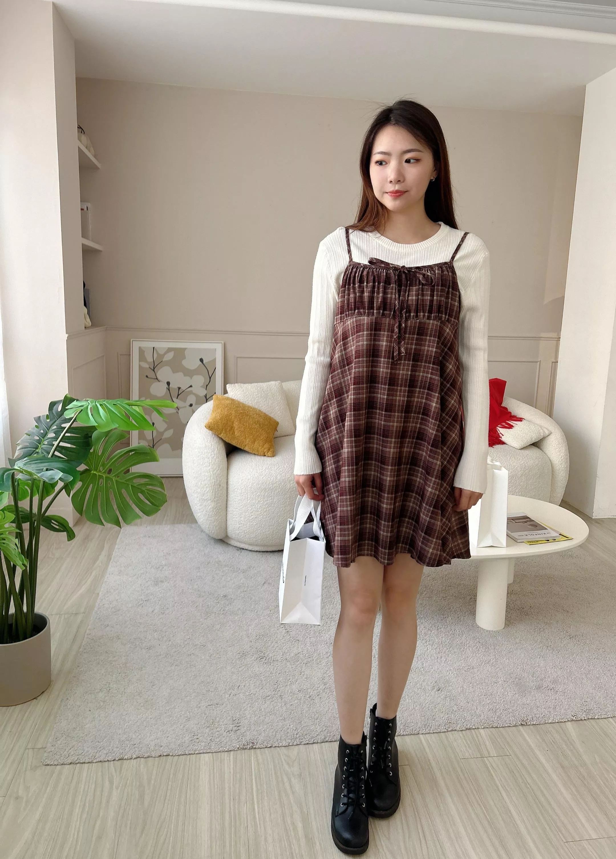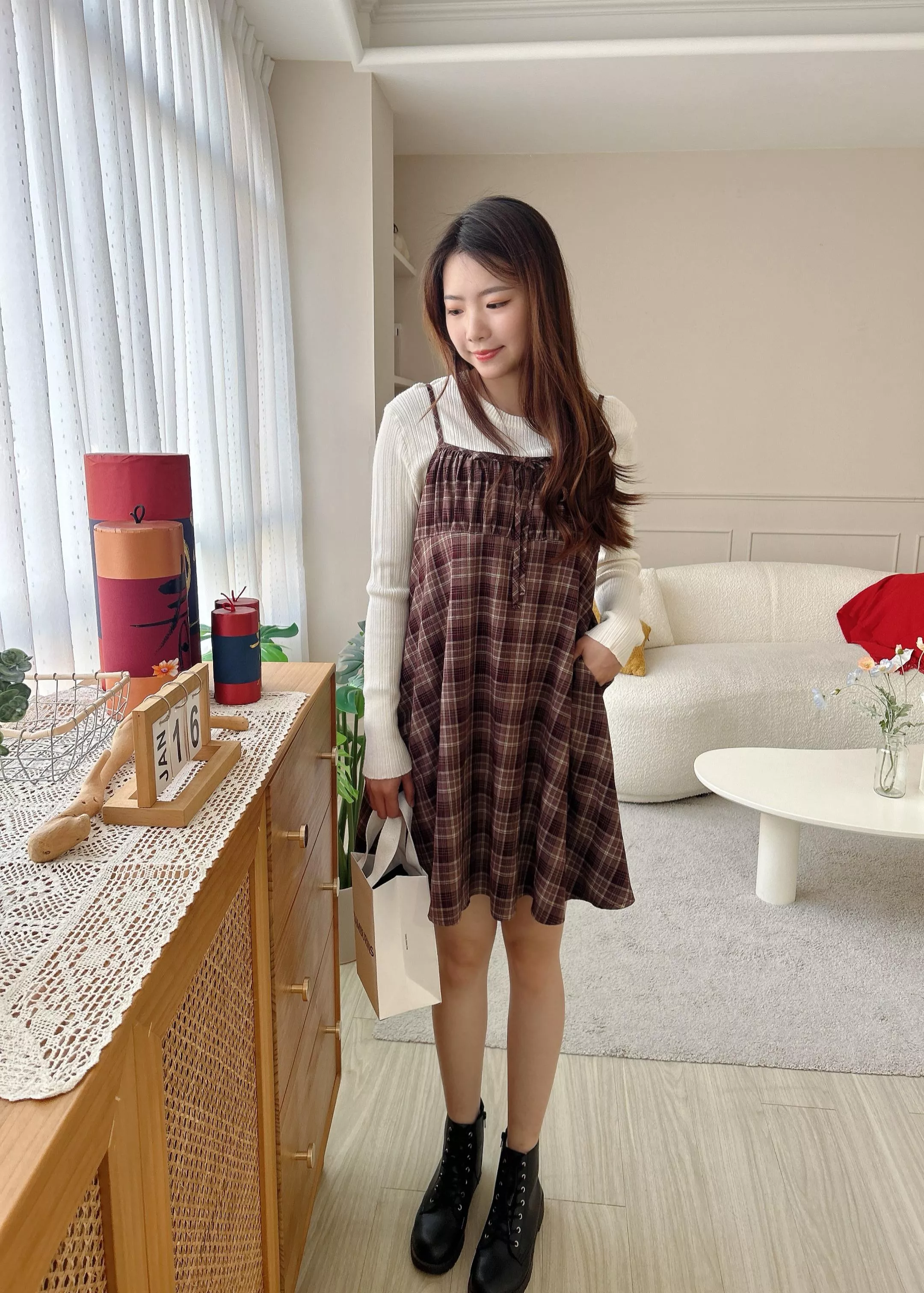 新年派對格紋口袋短洋裝