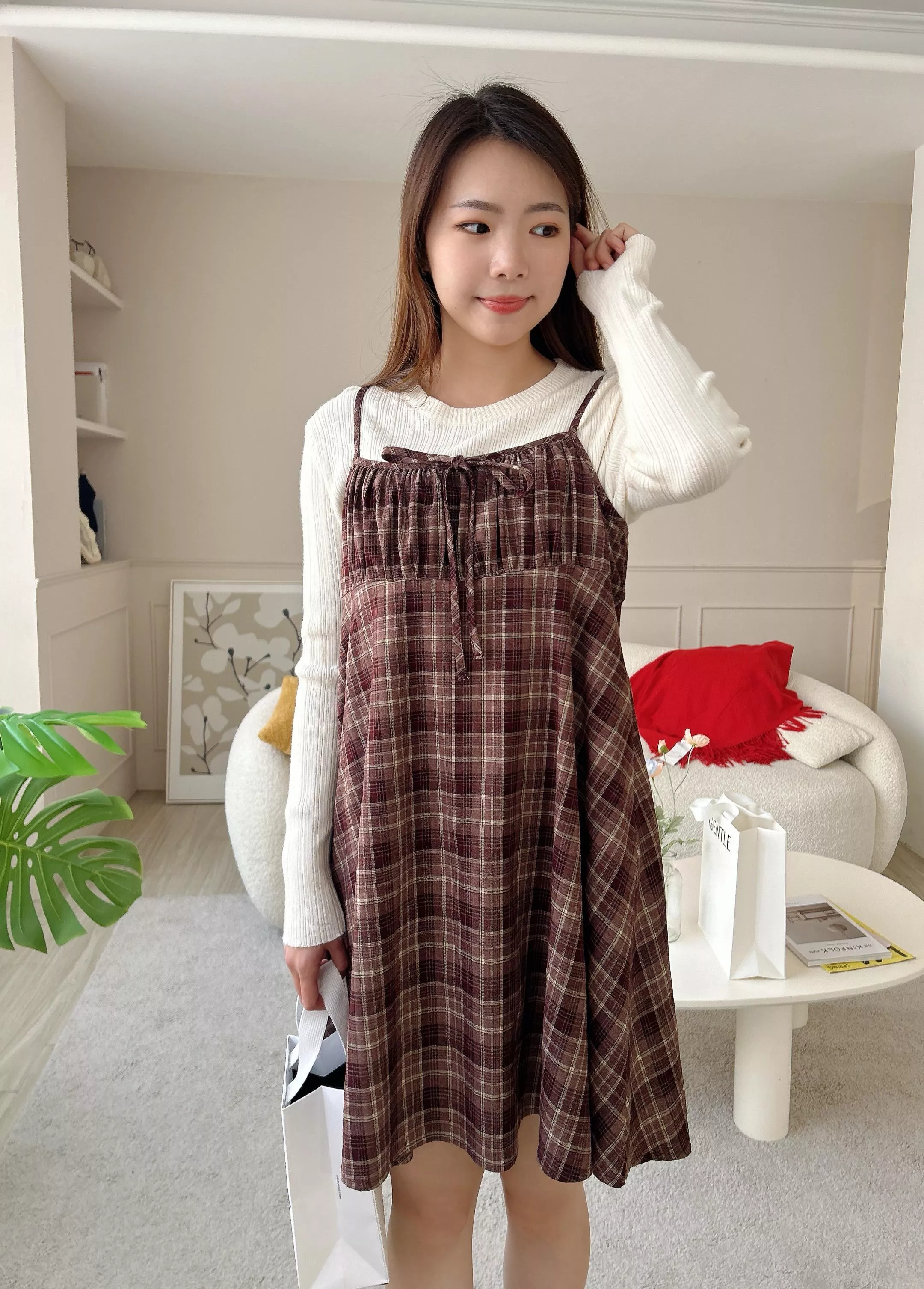 漂亮深紅格紋配色 穿上顯好氣色