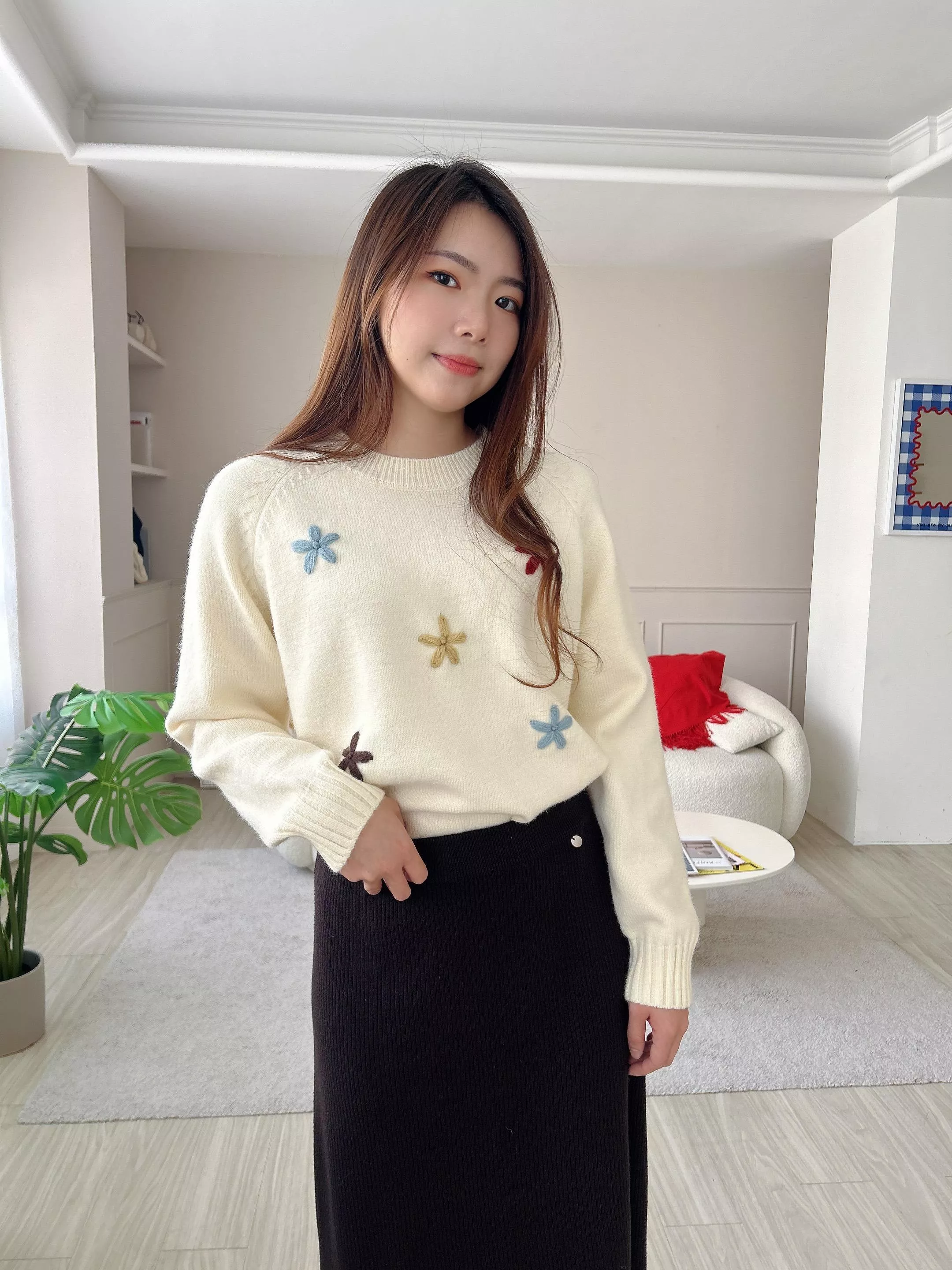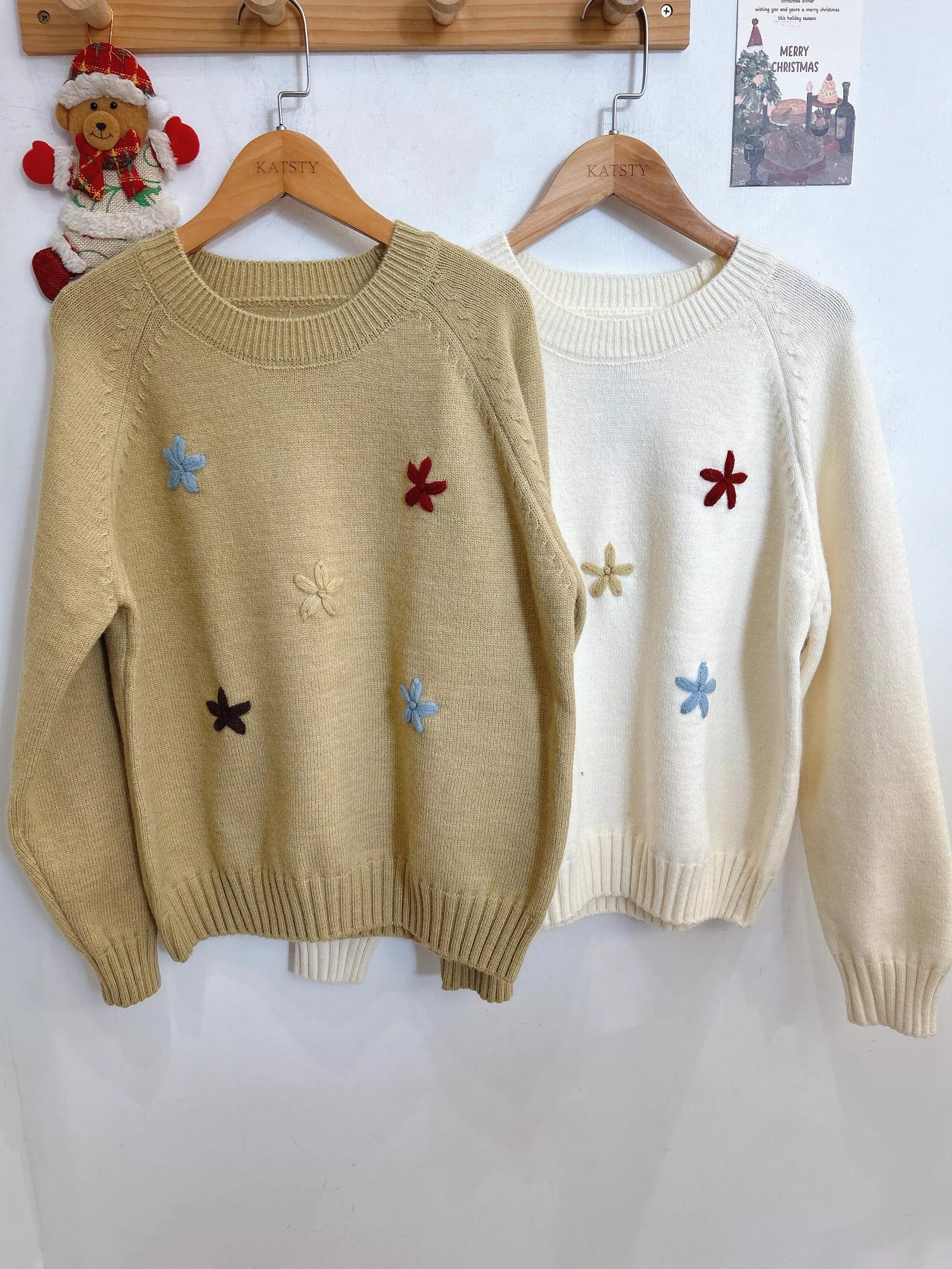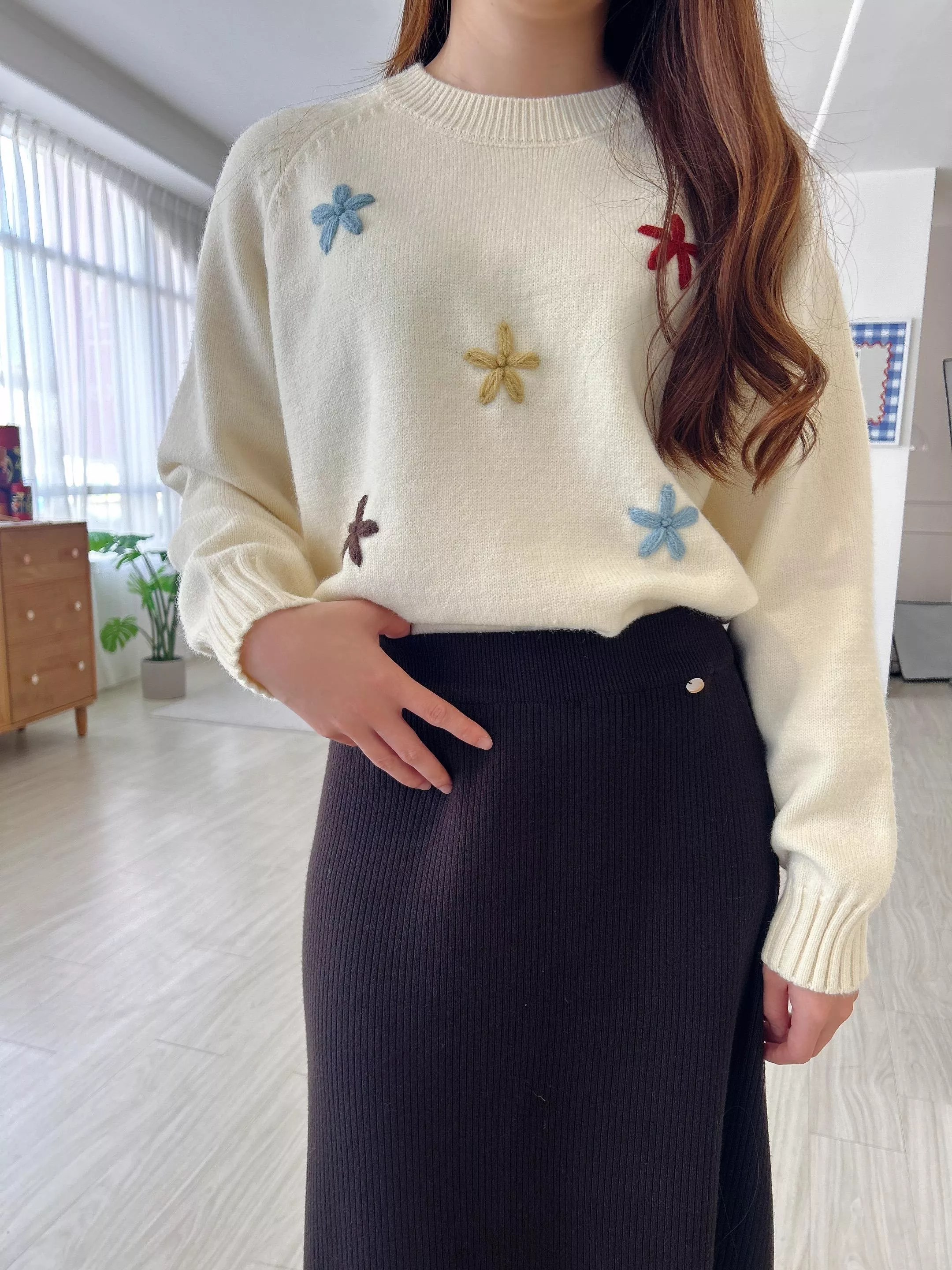 冬日焦點繽紛刺繡小花毛衣 (2色)