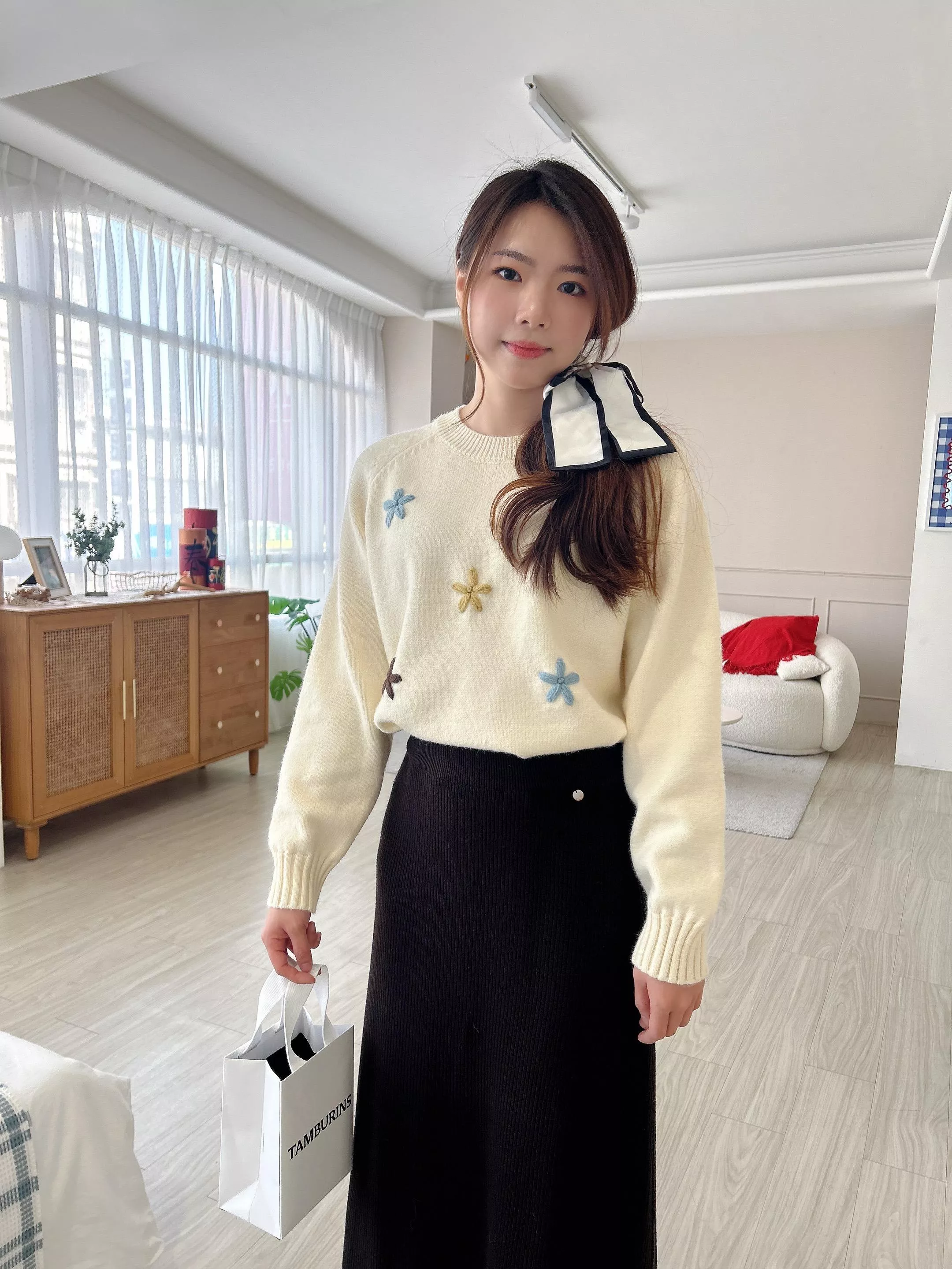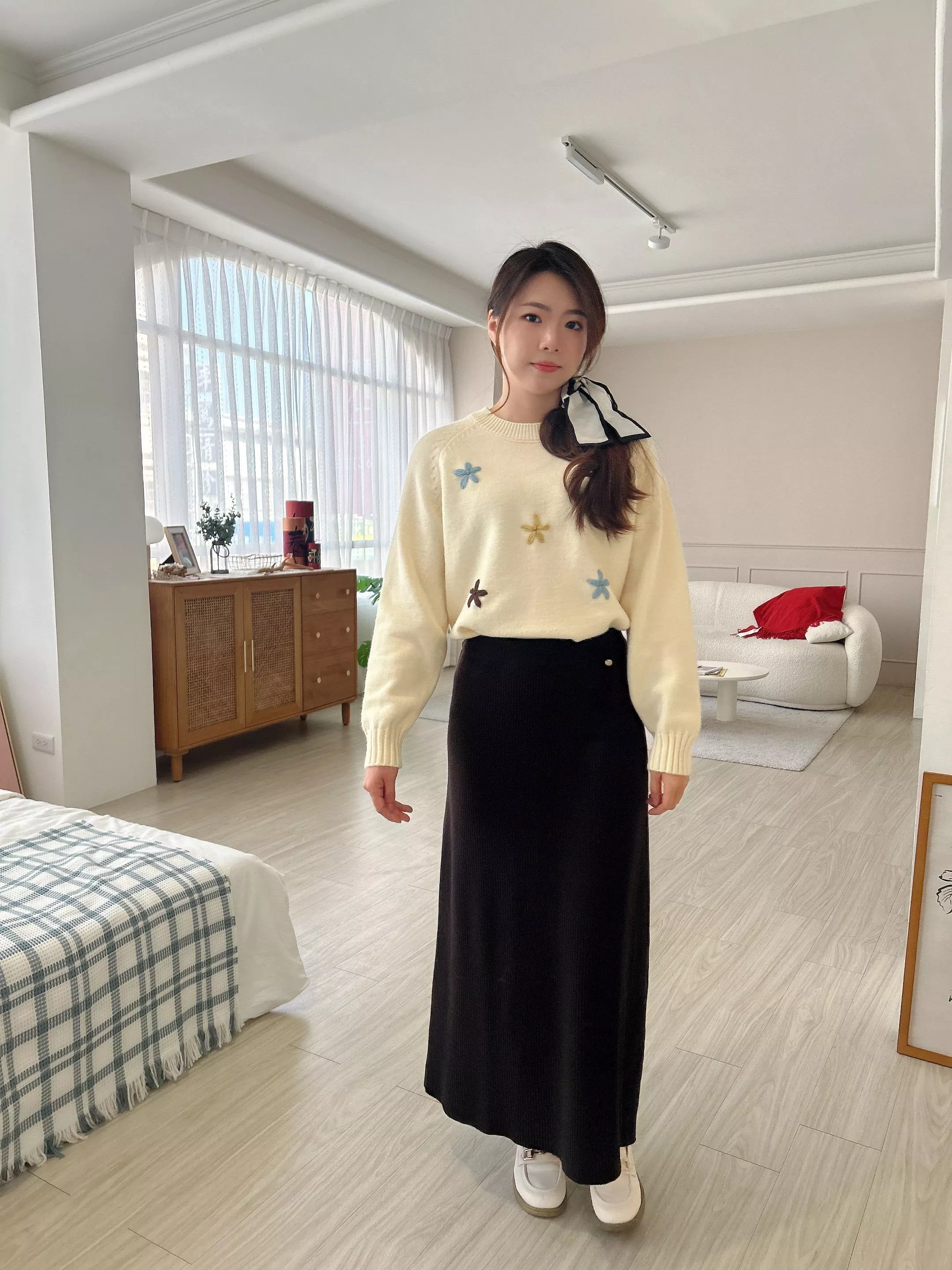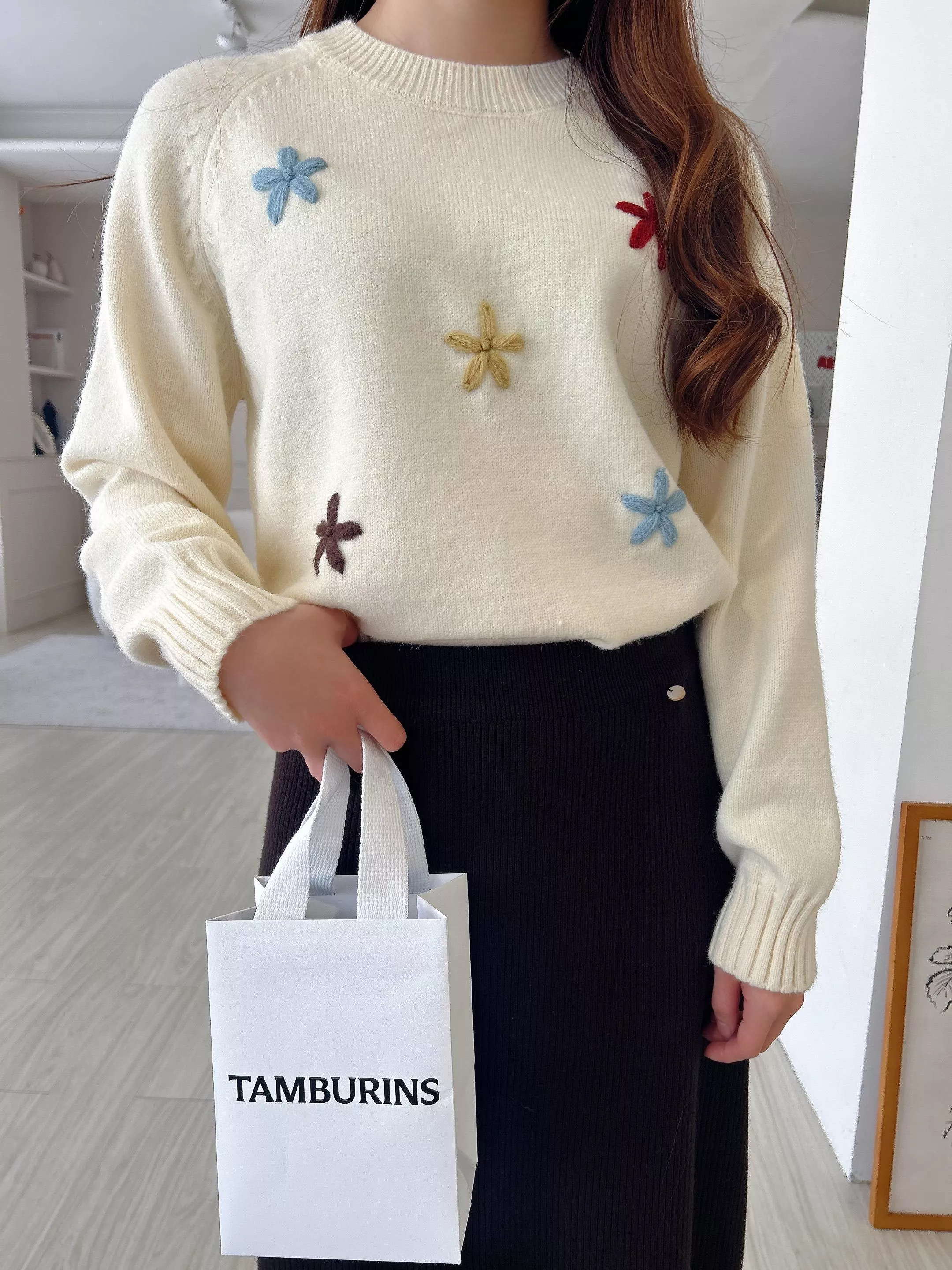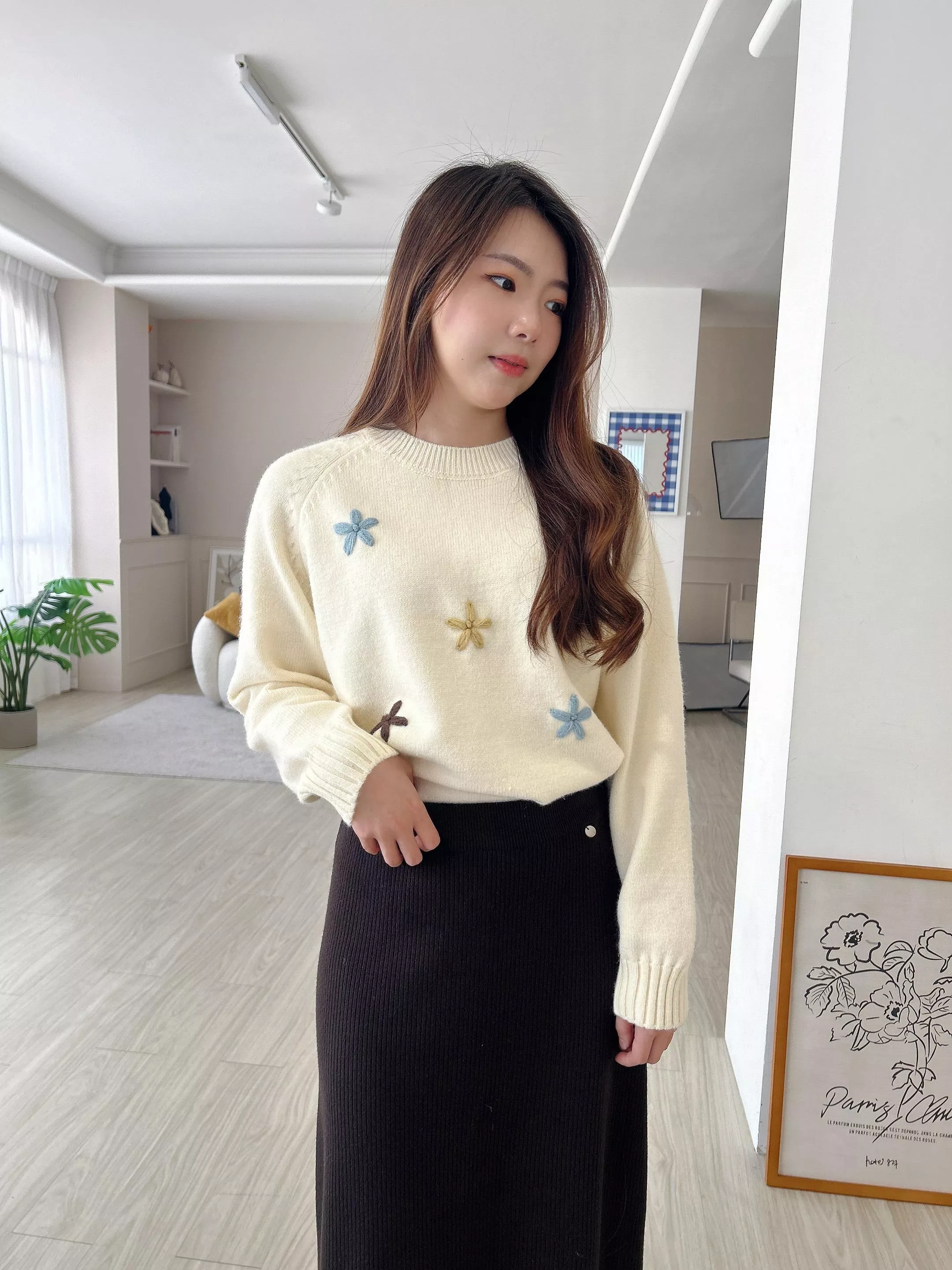 冬日焦點繽紛刺繡小花毛衣 (2色)