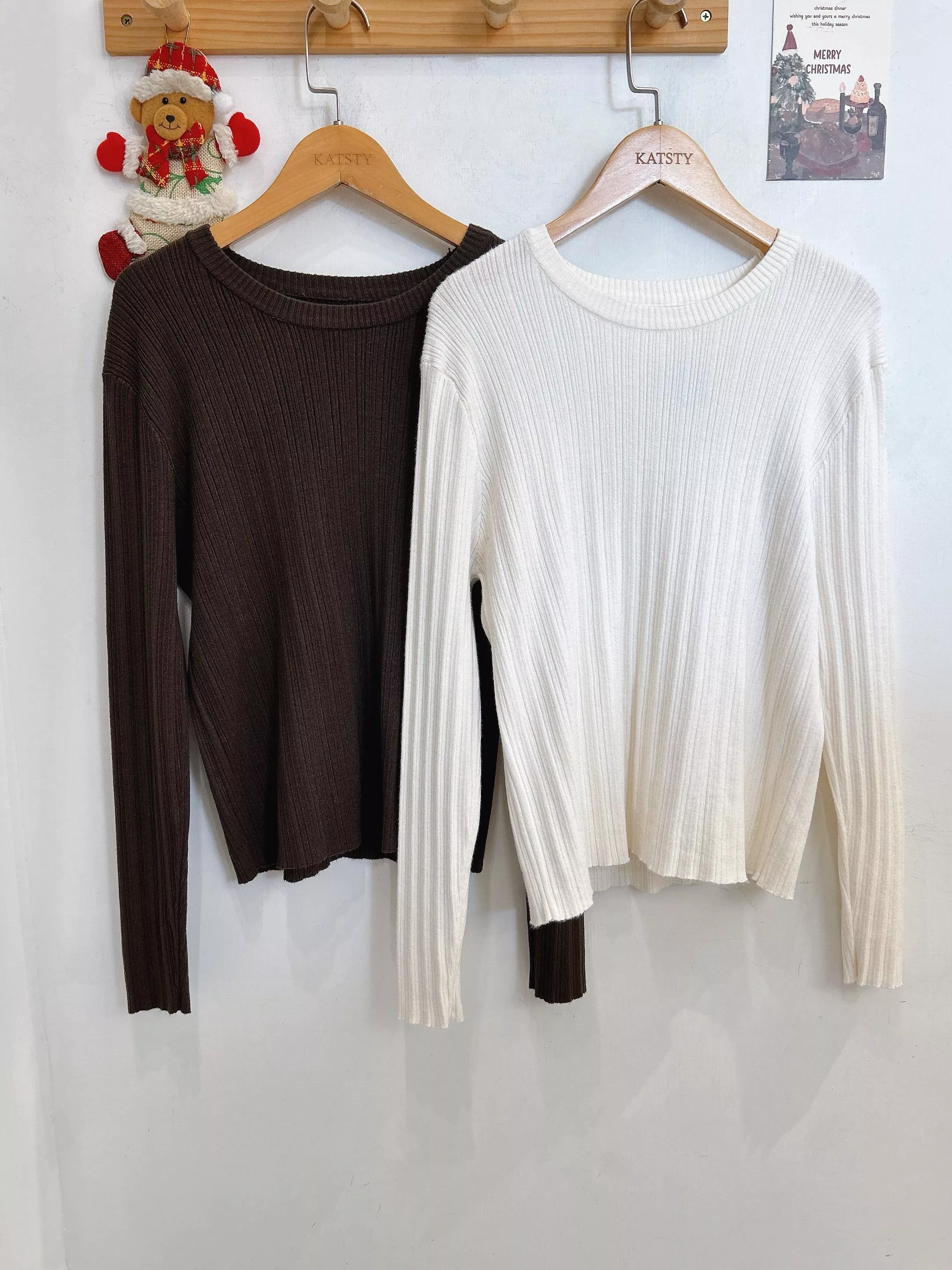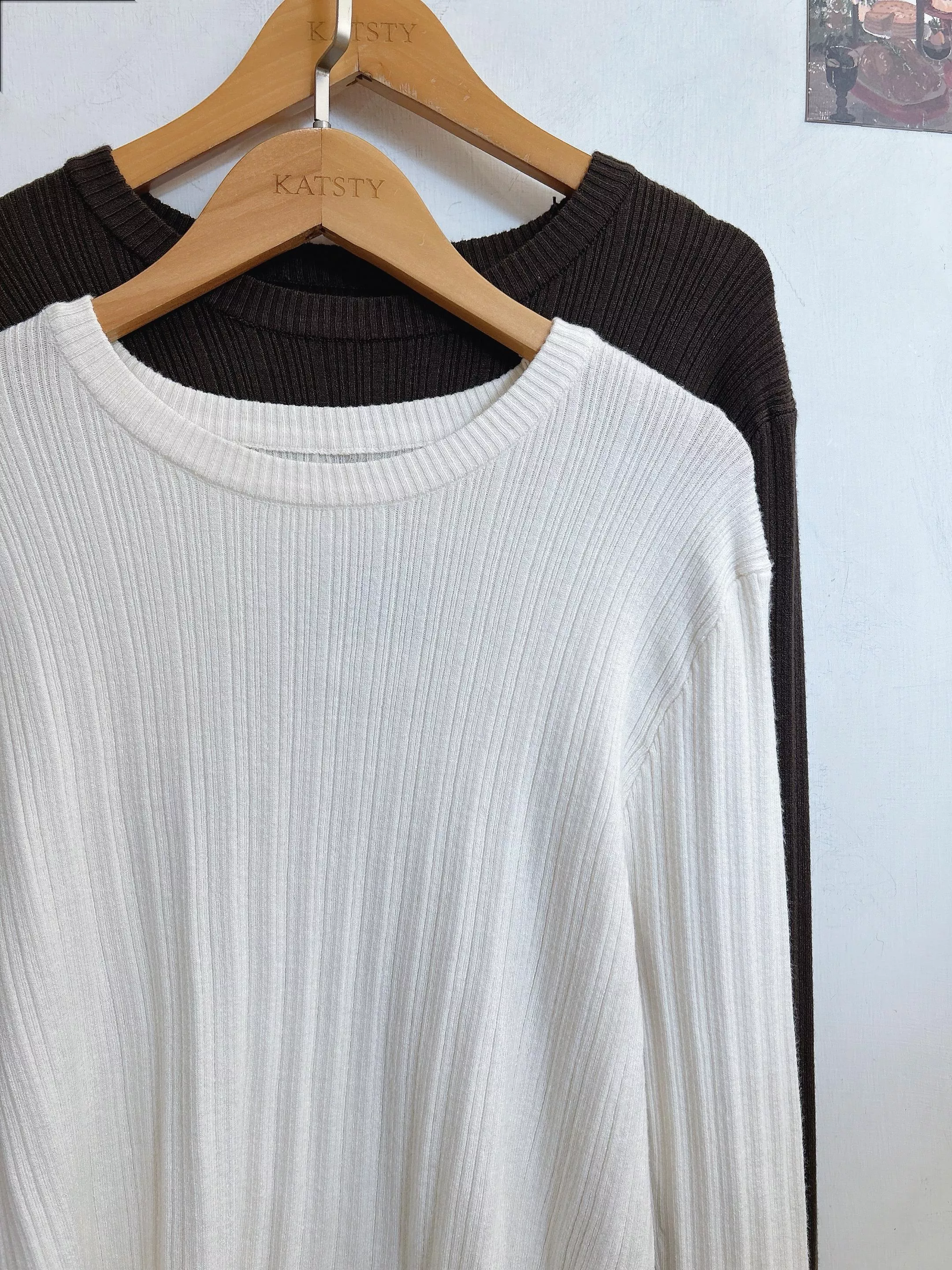 衣櫃必備圓領坑條打底上衣 (2色)