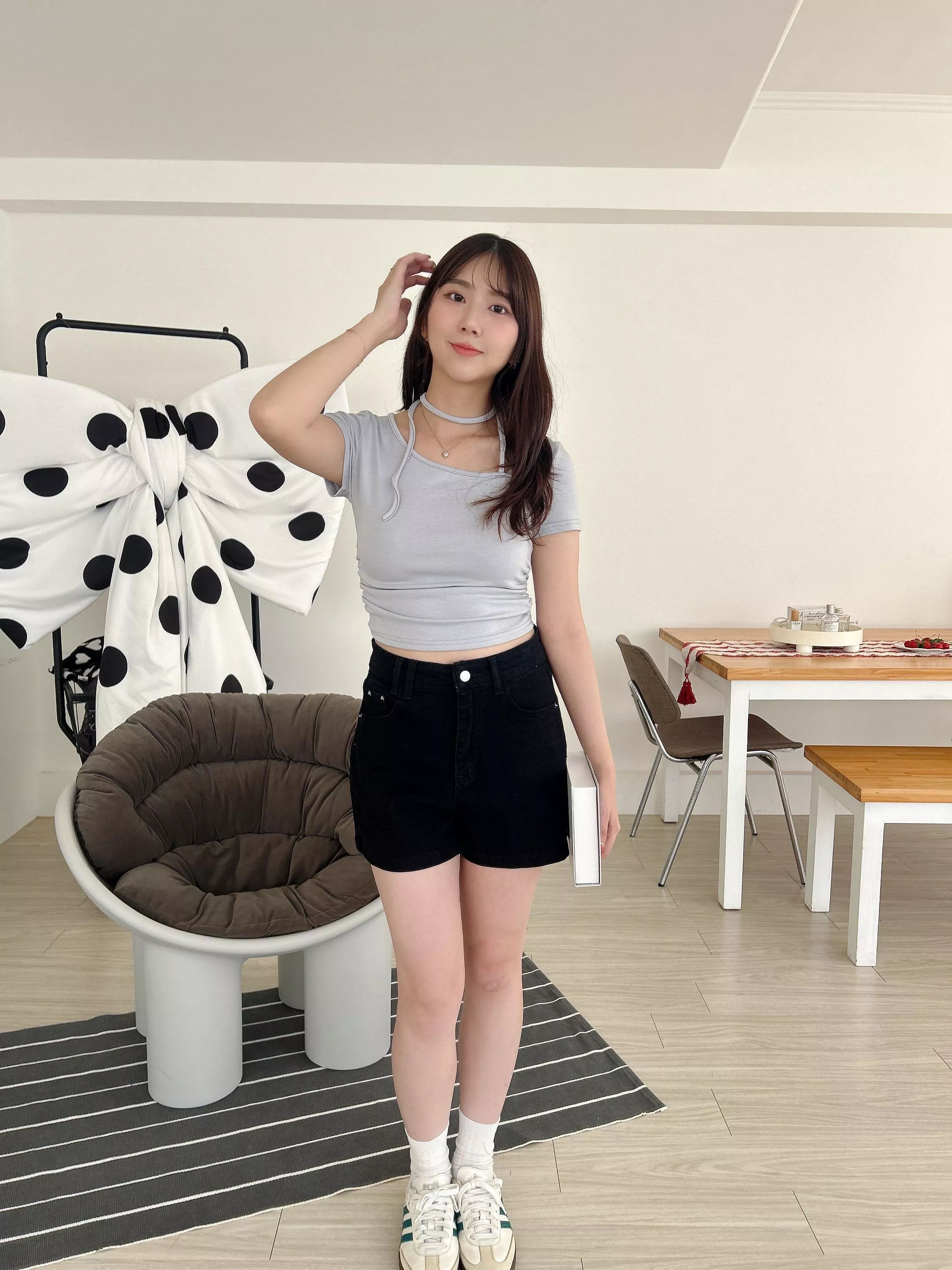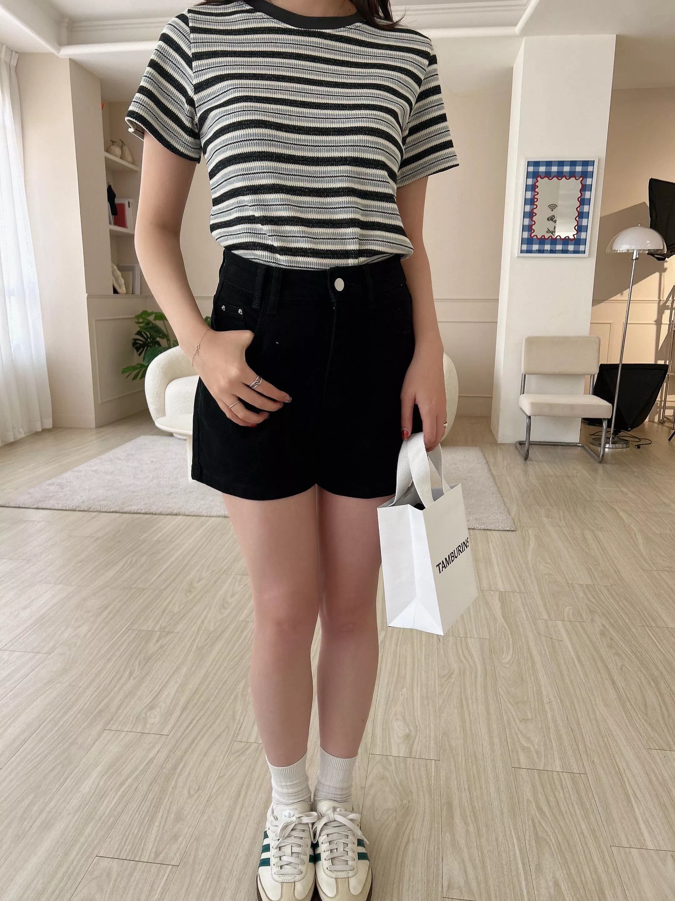 100%顯瘦單釦彈力牛仔短褲 (S-L)