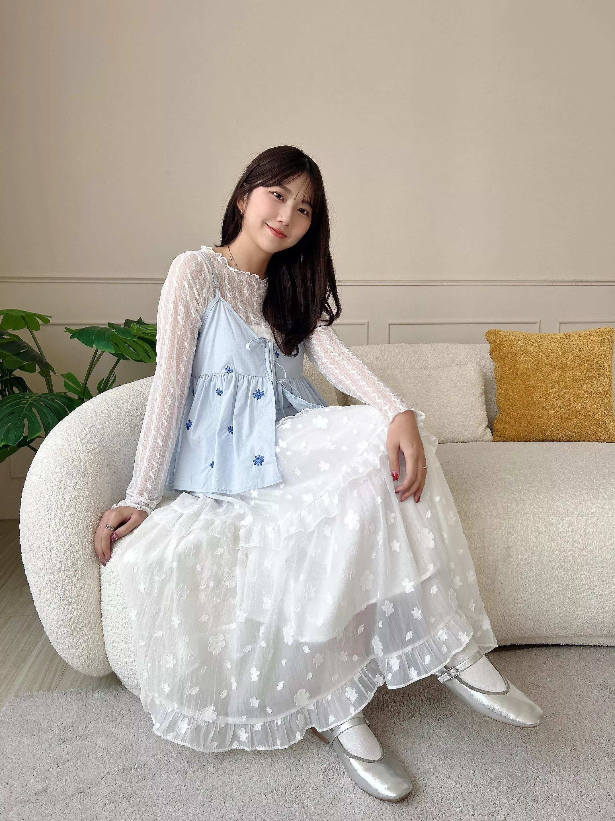 浪漫春日花花壓紋長裙 (2色)