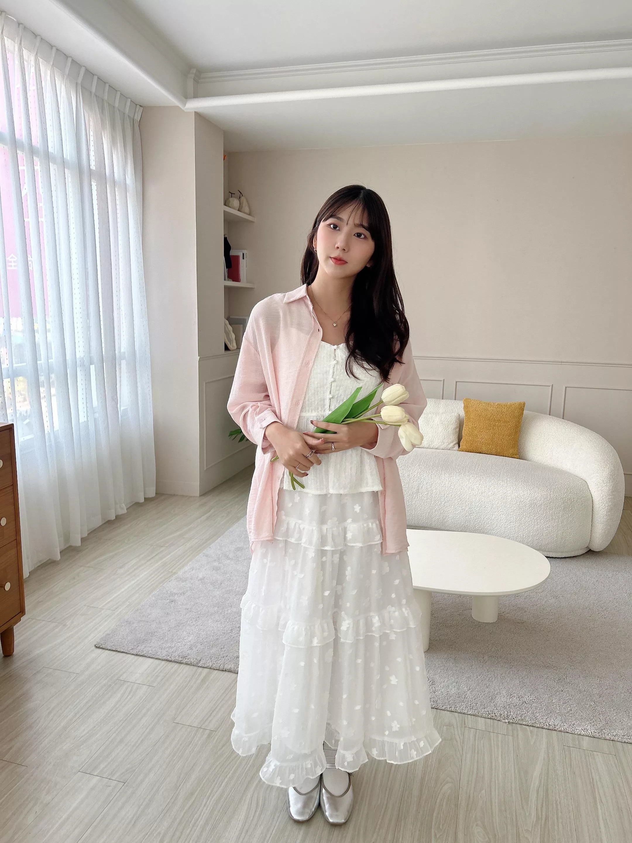 輕盈雪紡紗 搭配T-Shirt 襯衫都漂亮:)