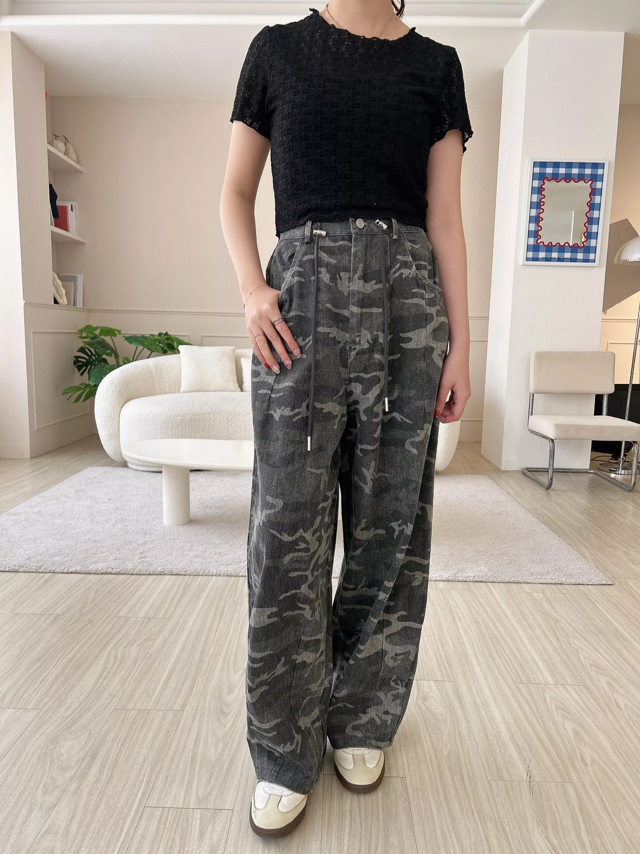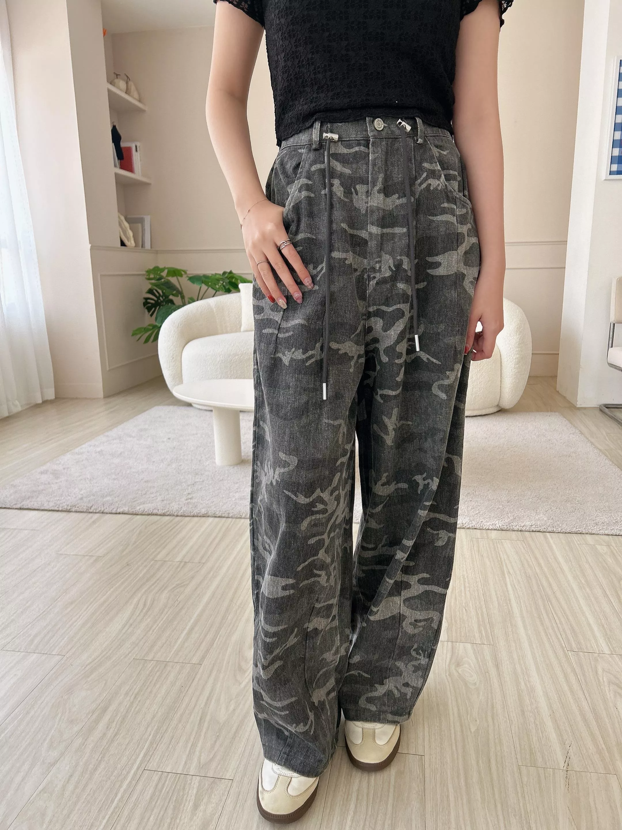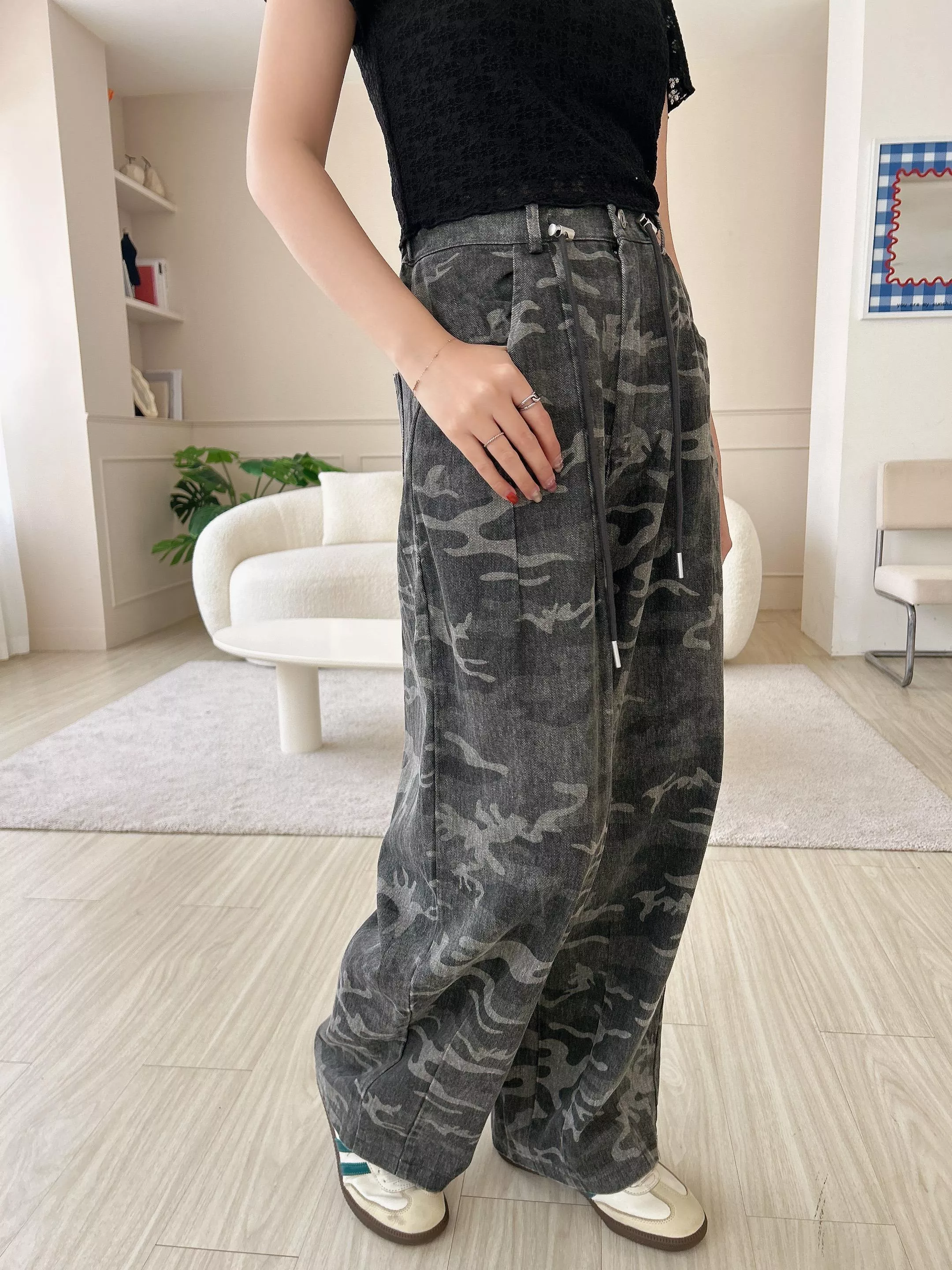 首爾街頭迷彩抽繩繭型褲