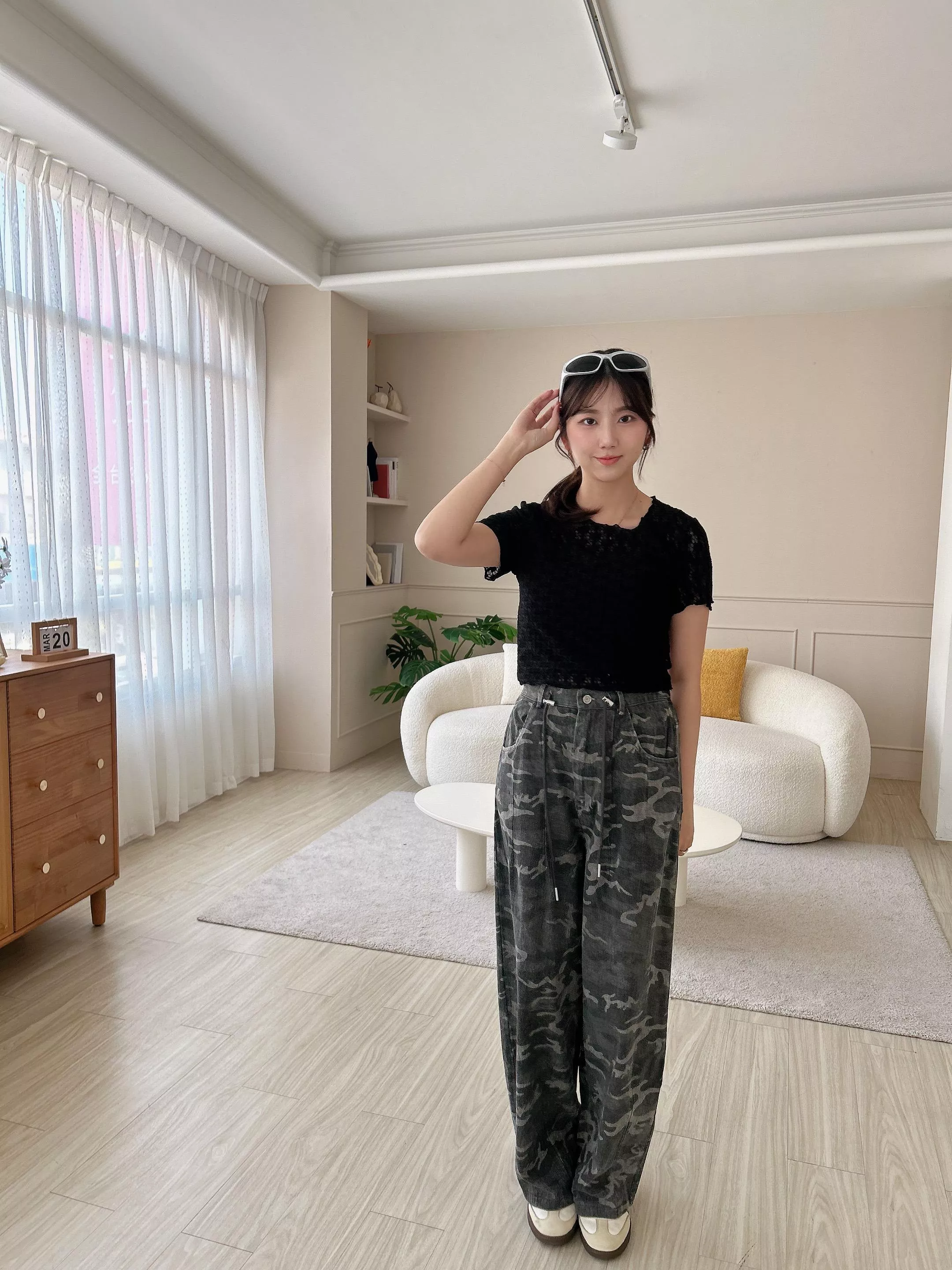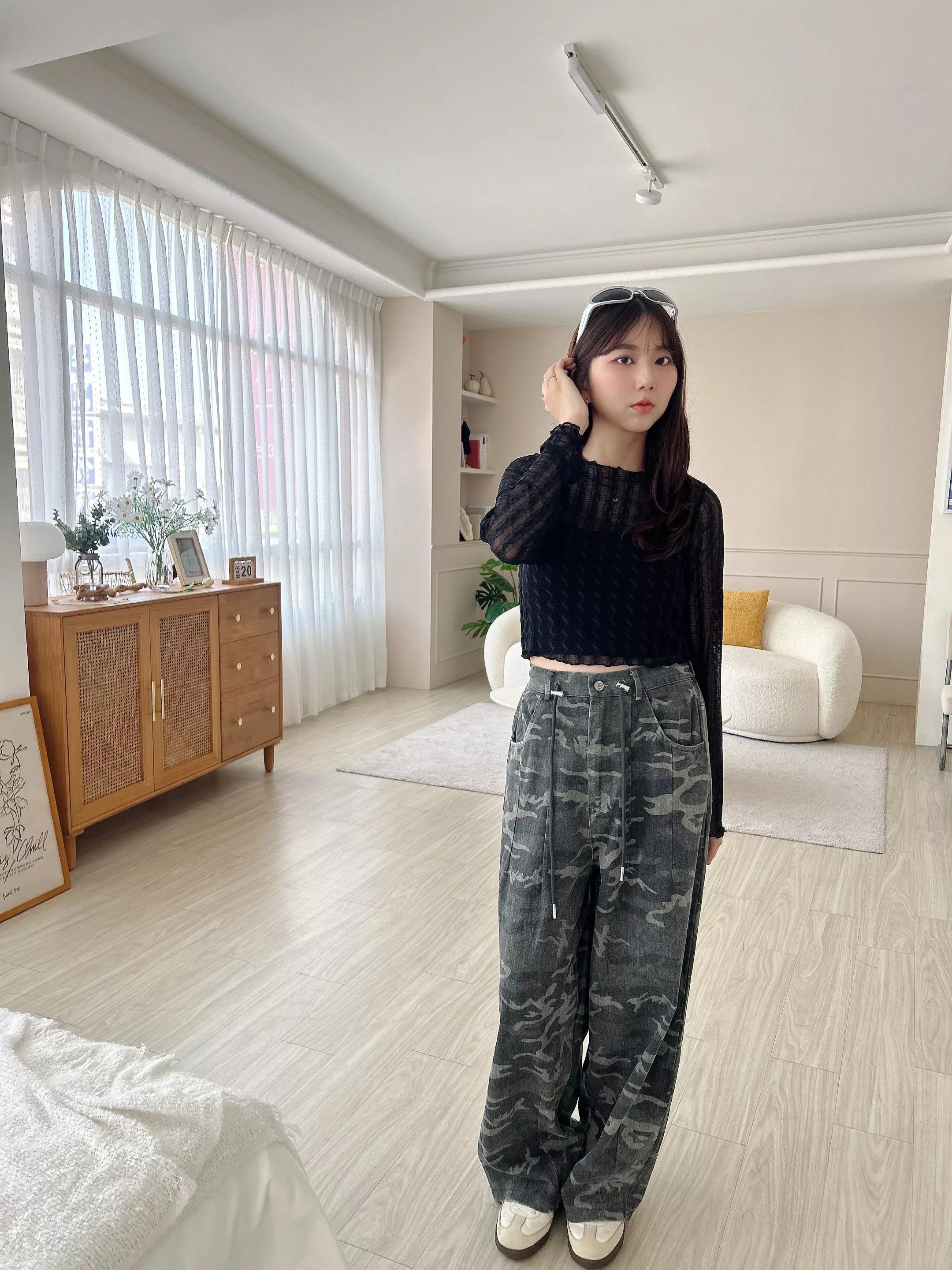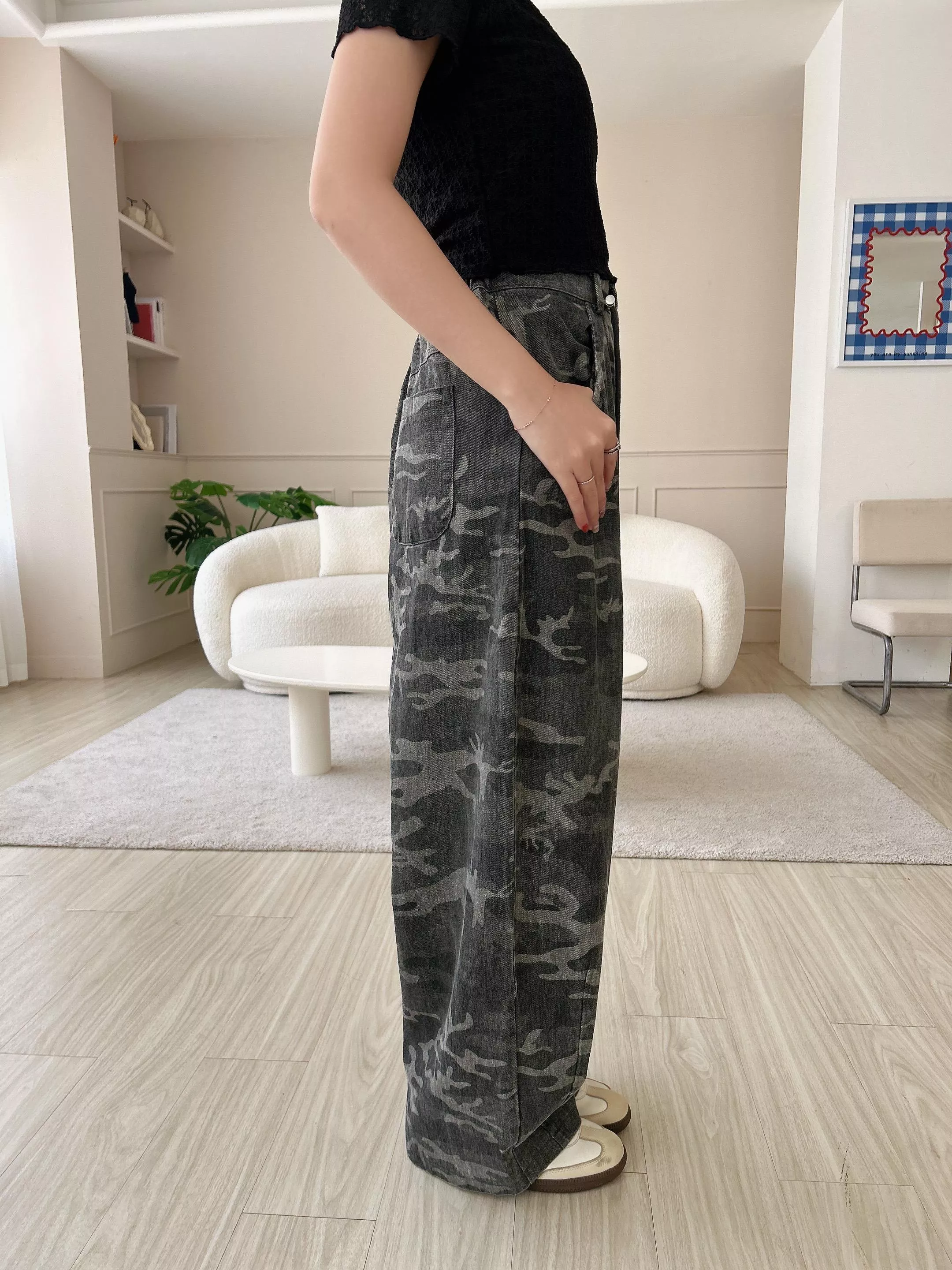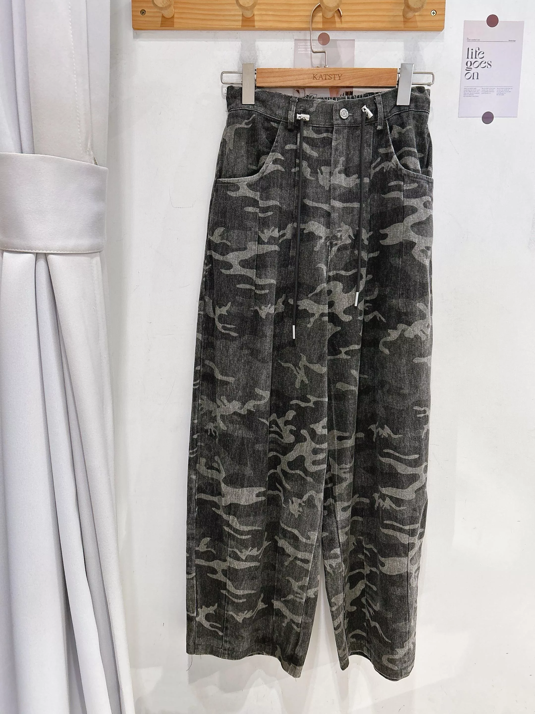 首爾街頭迷彩抽繩繭型褲