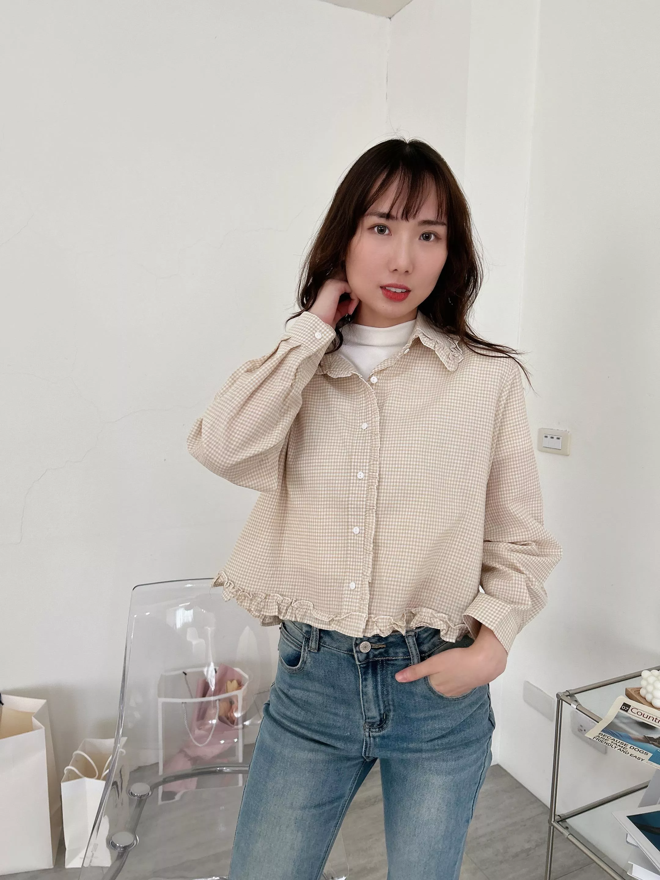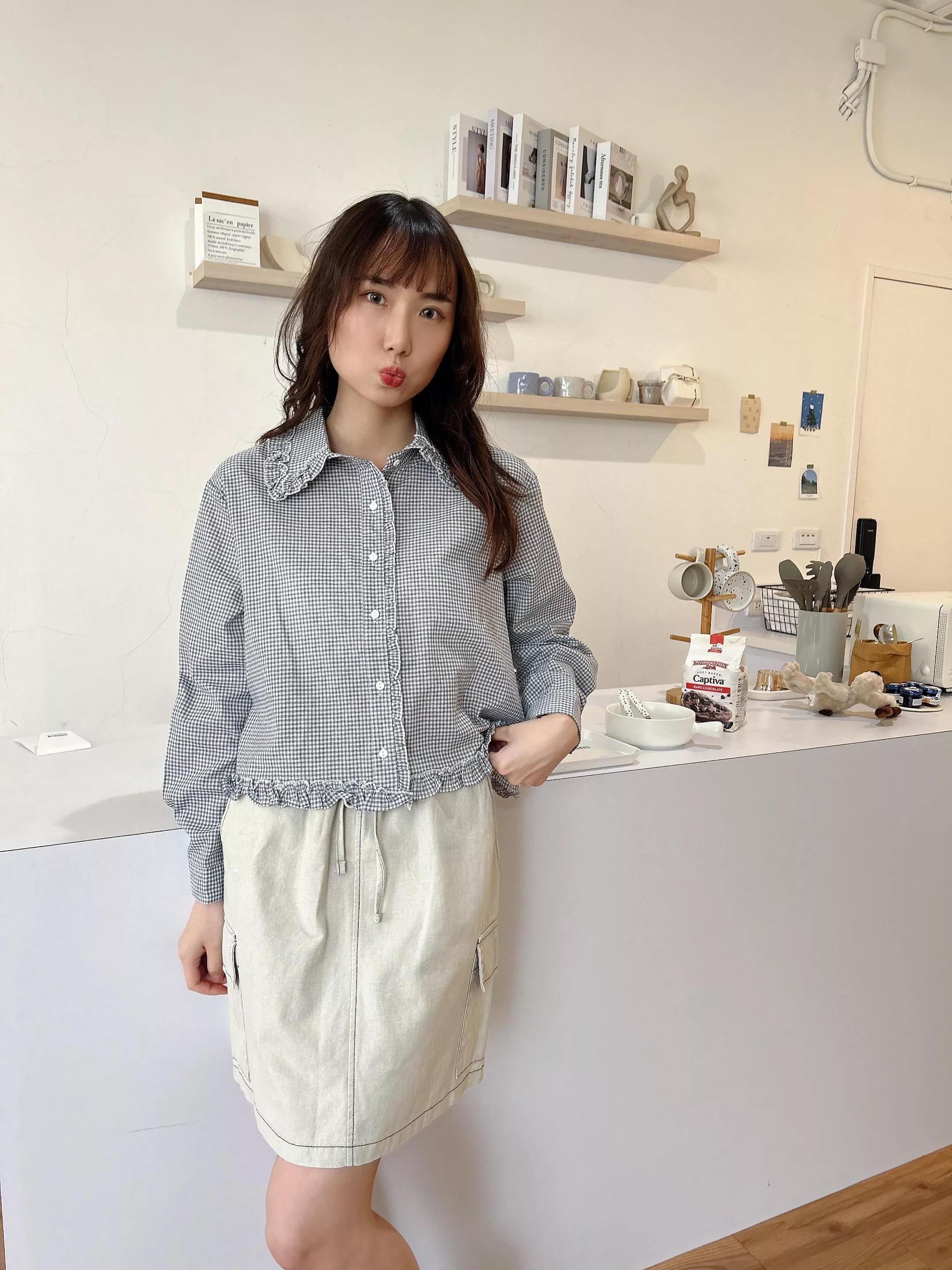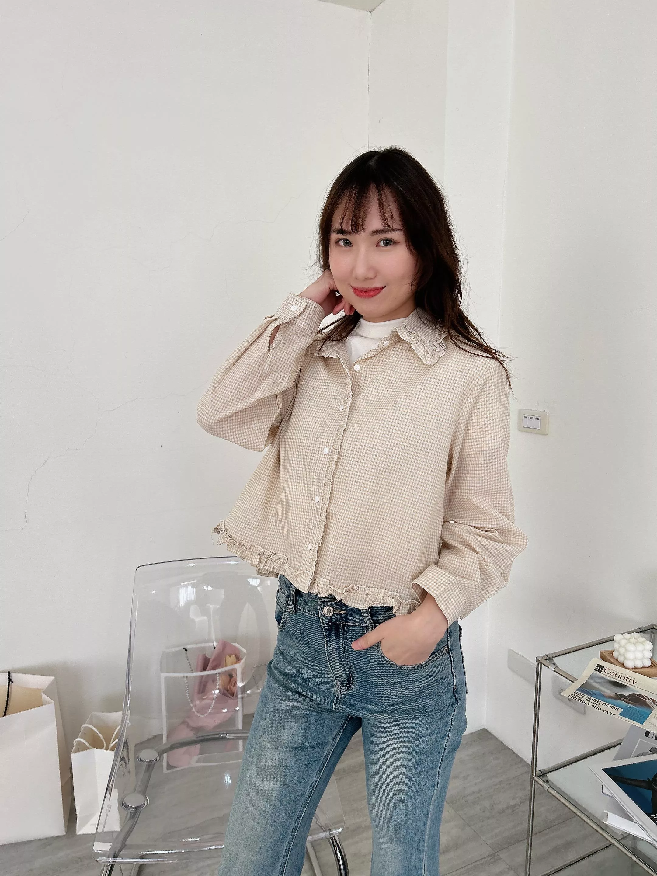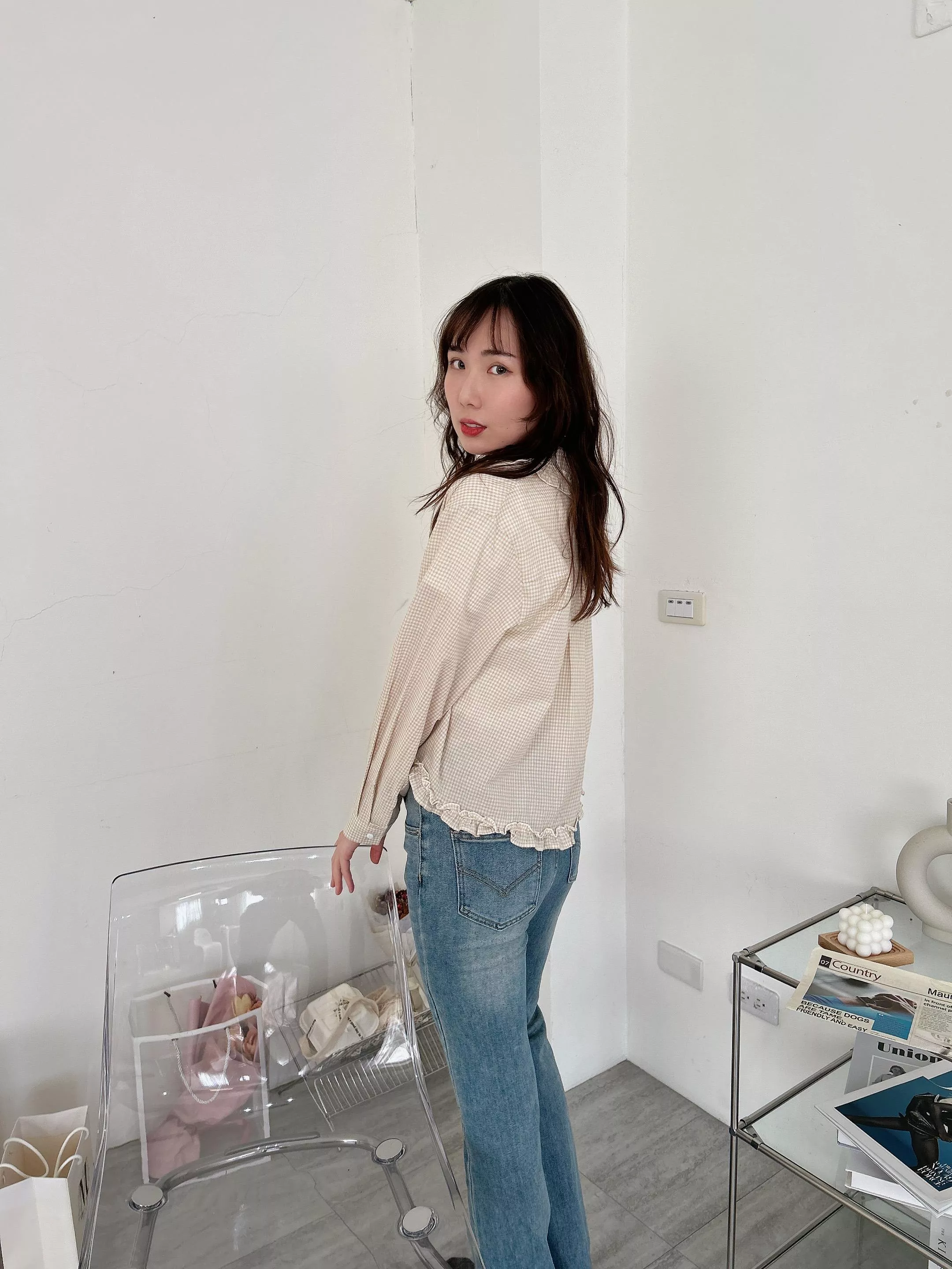 英倫風荷葉邊格紋排釦上衣 (2色)