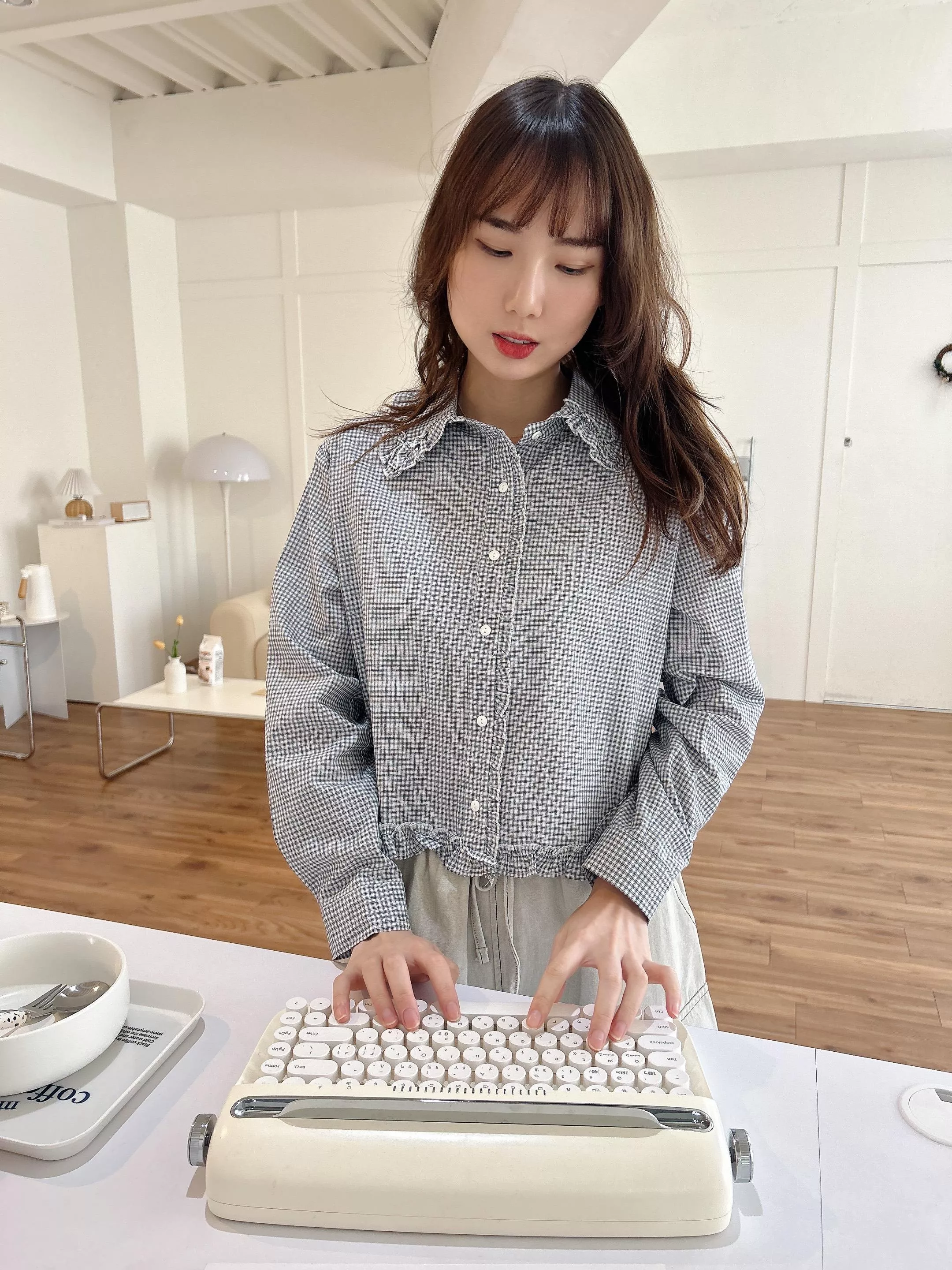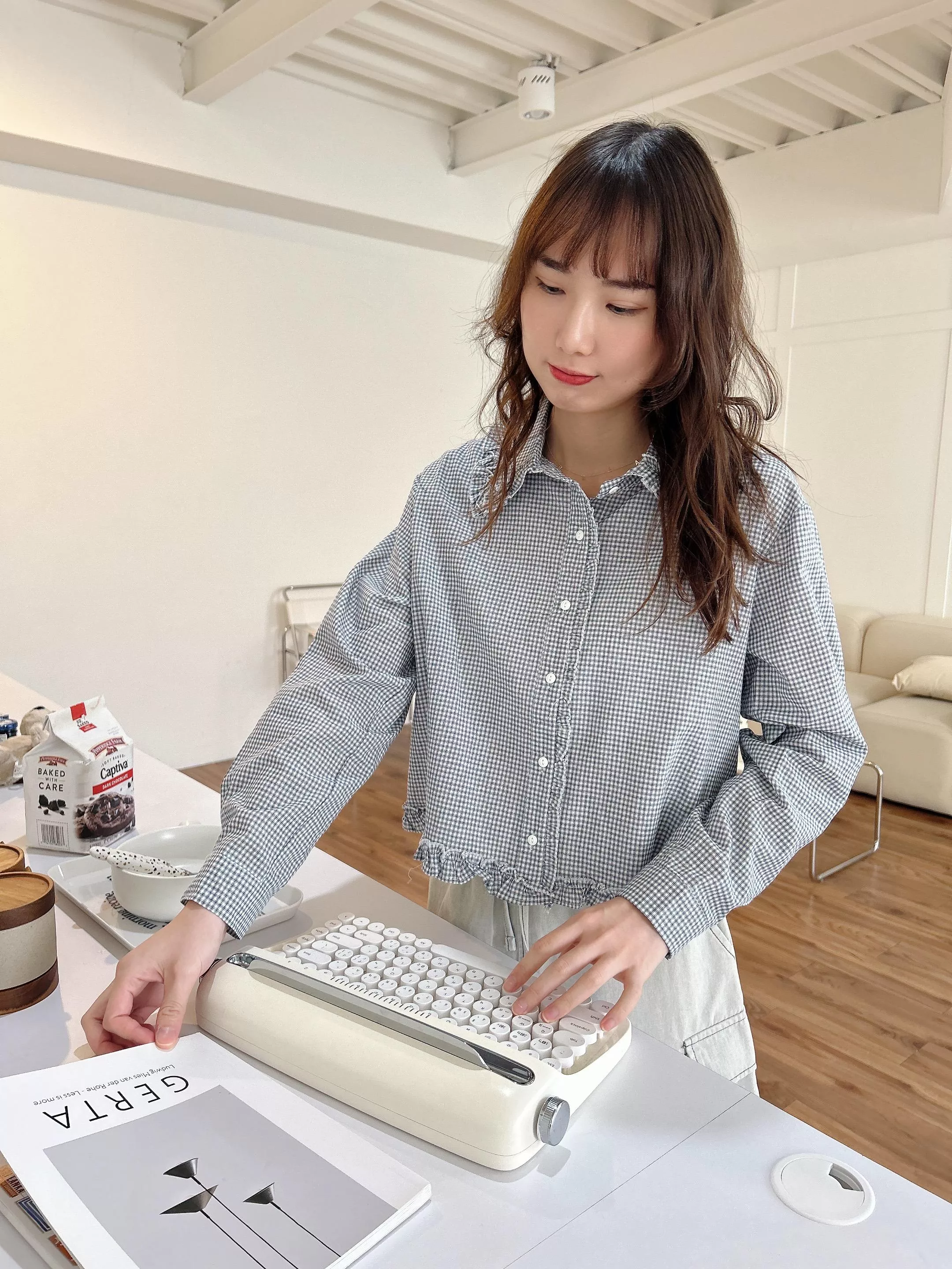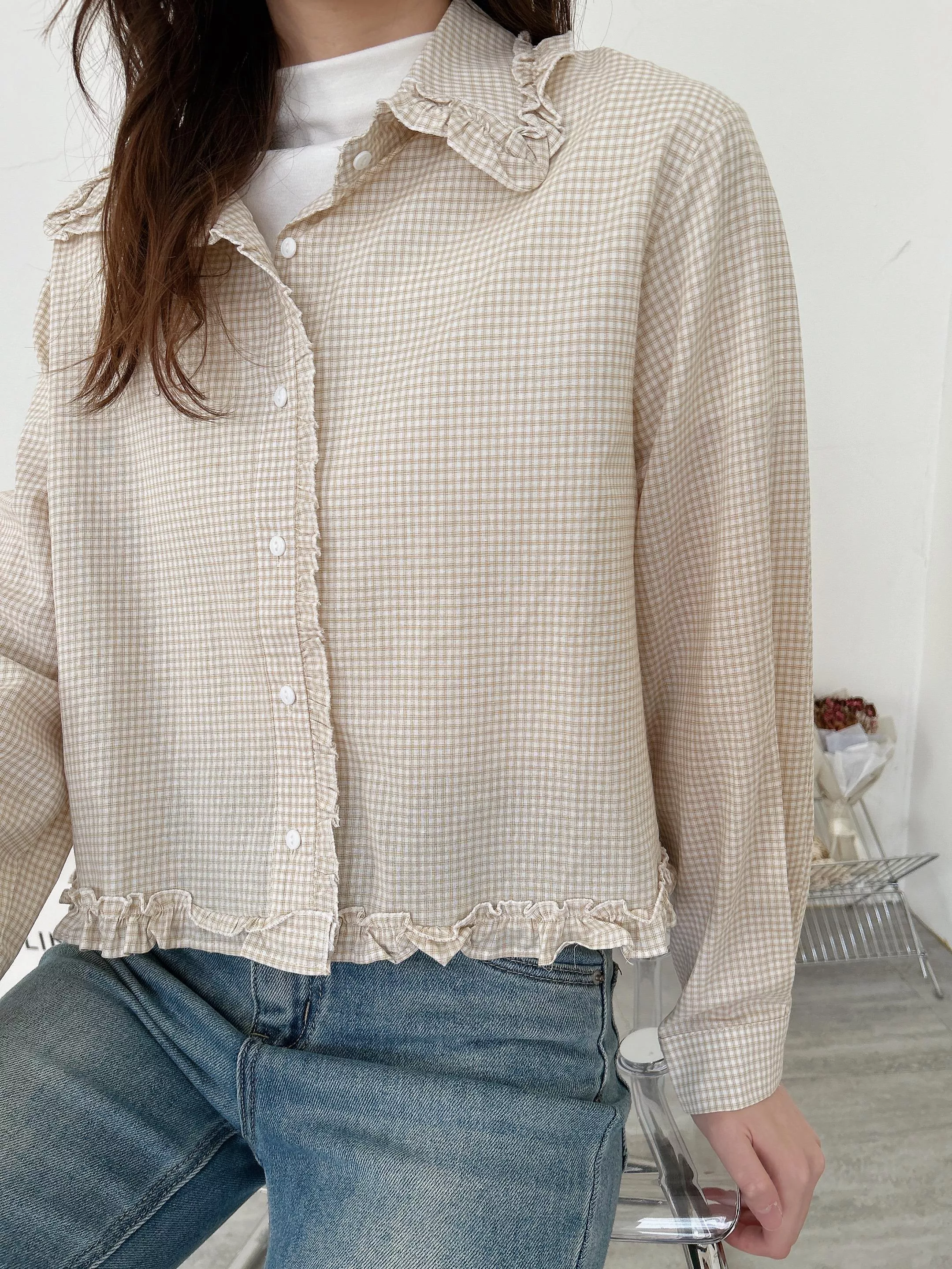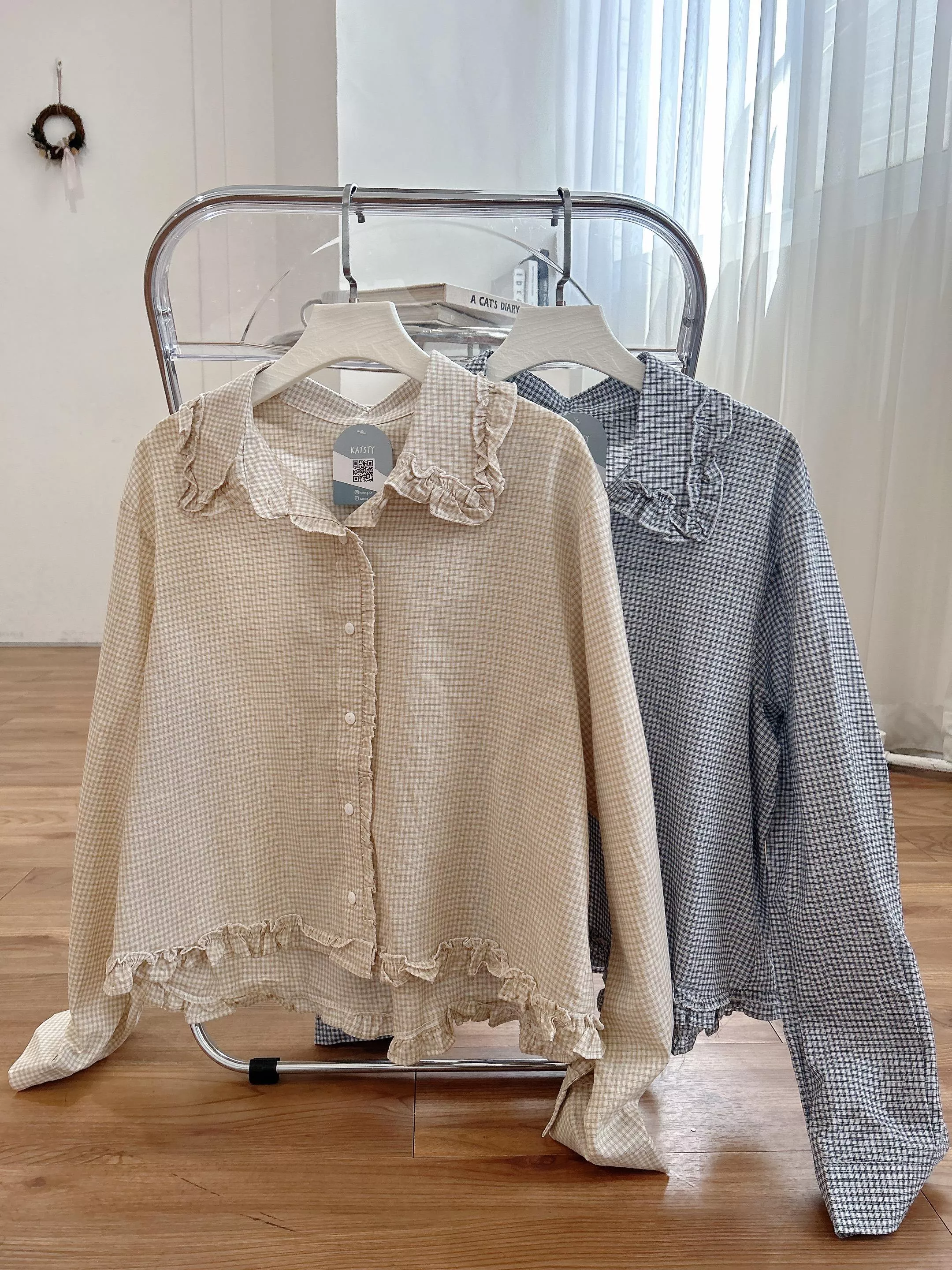 英倫風荷葉邊格紋排釦上衣 (2色)