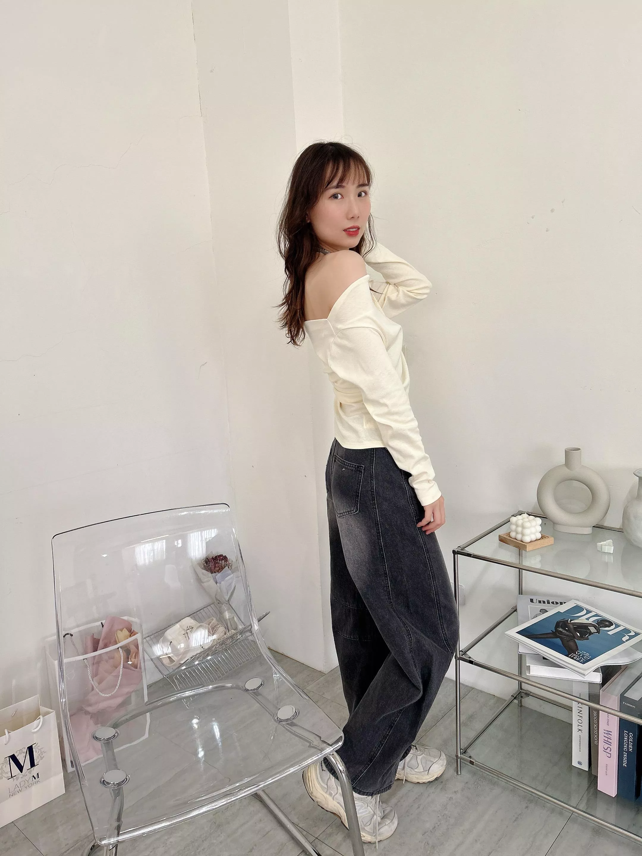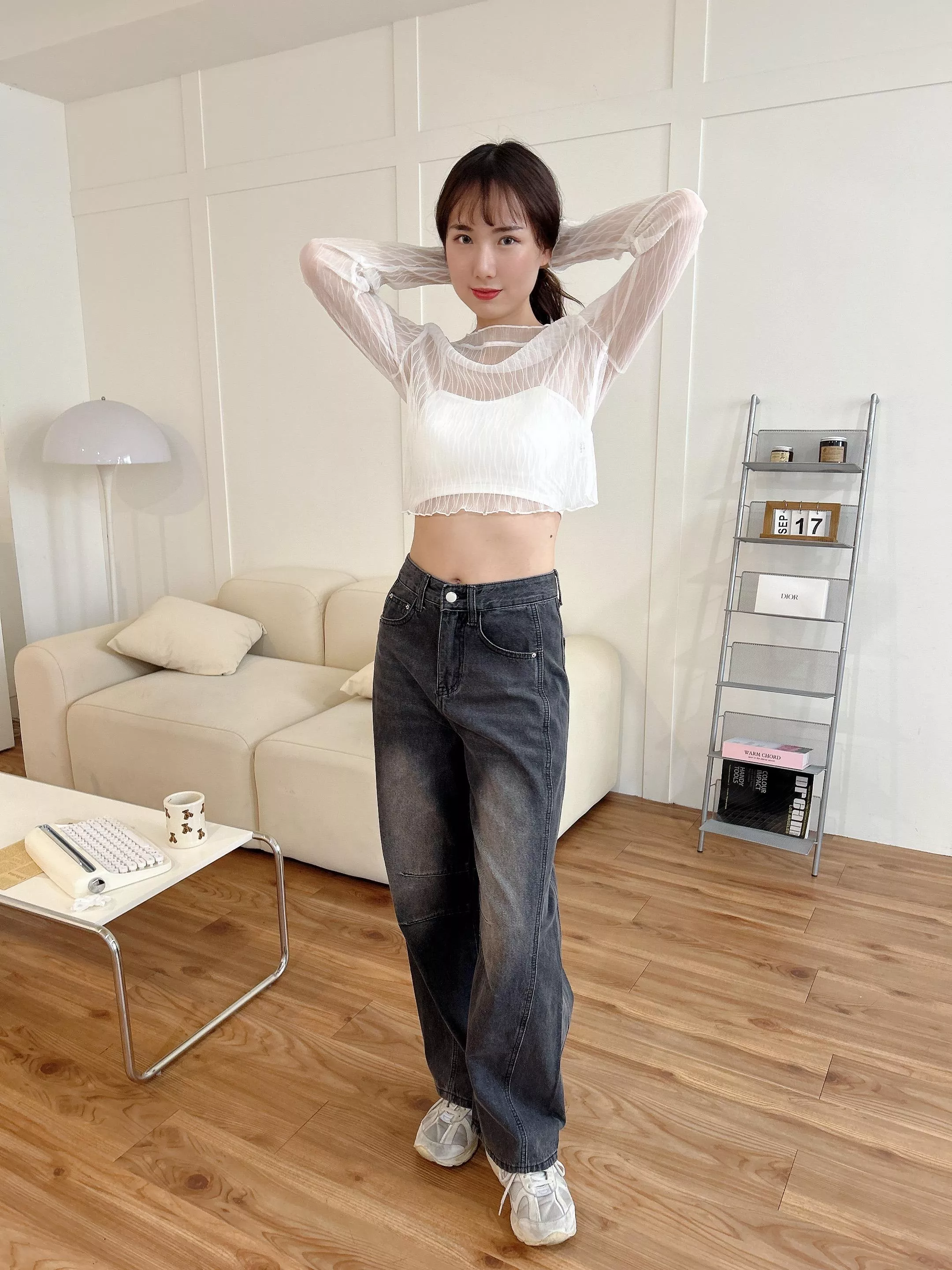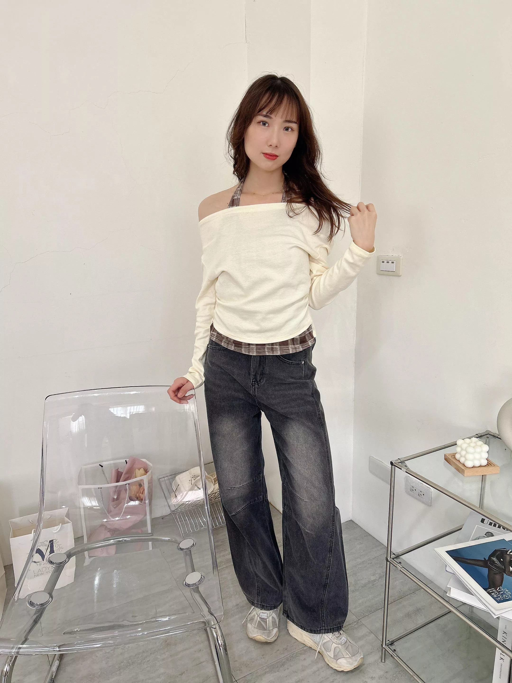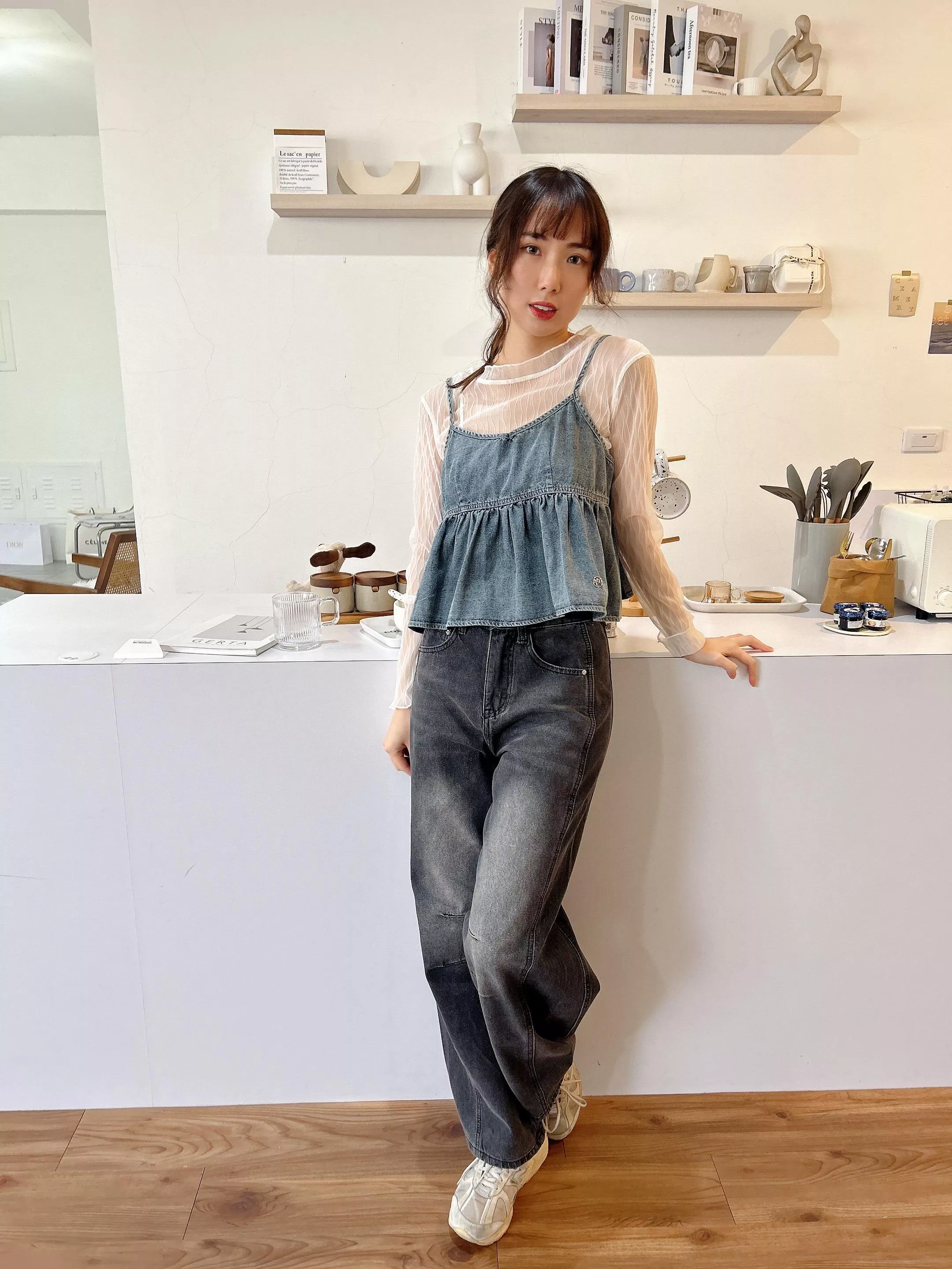 時髦復古中間刷白 配上超好看的深色牛仔