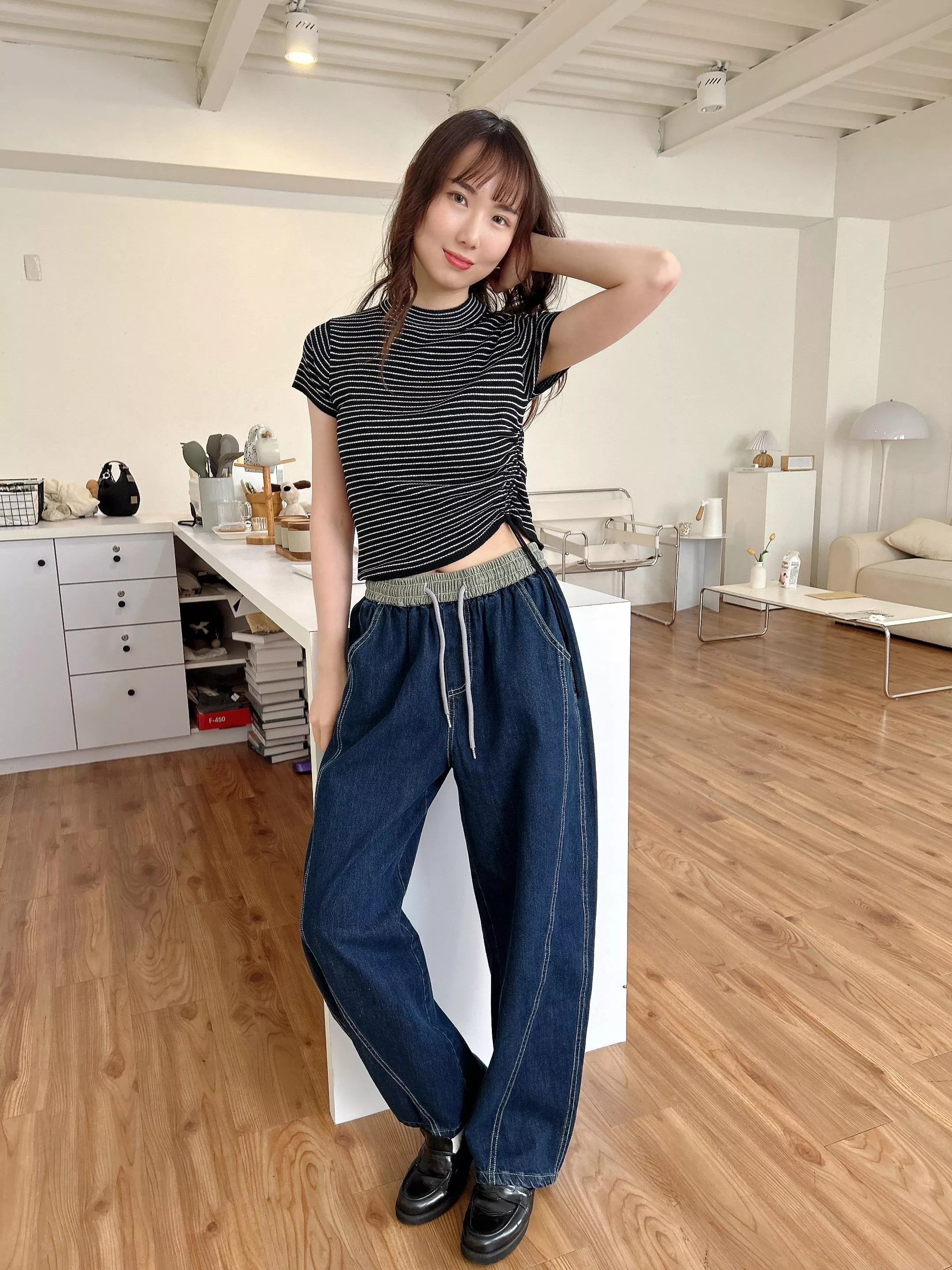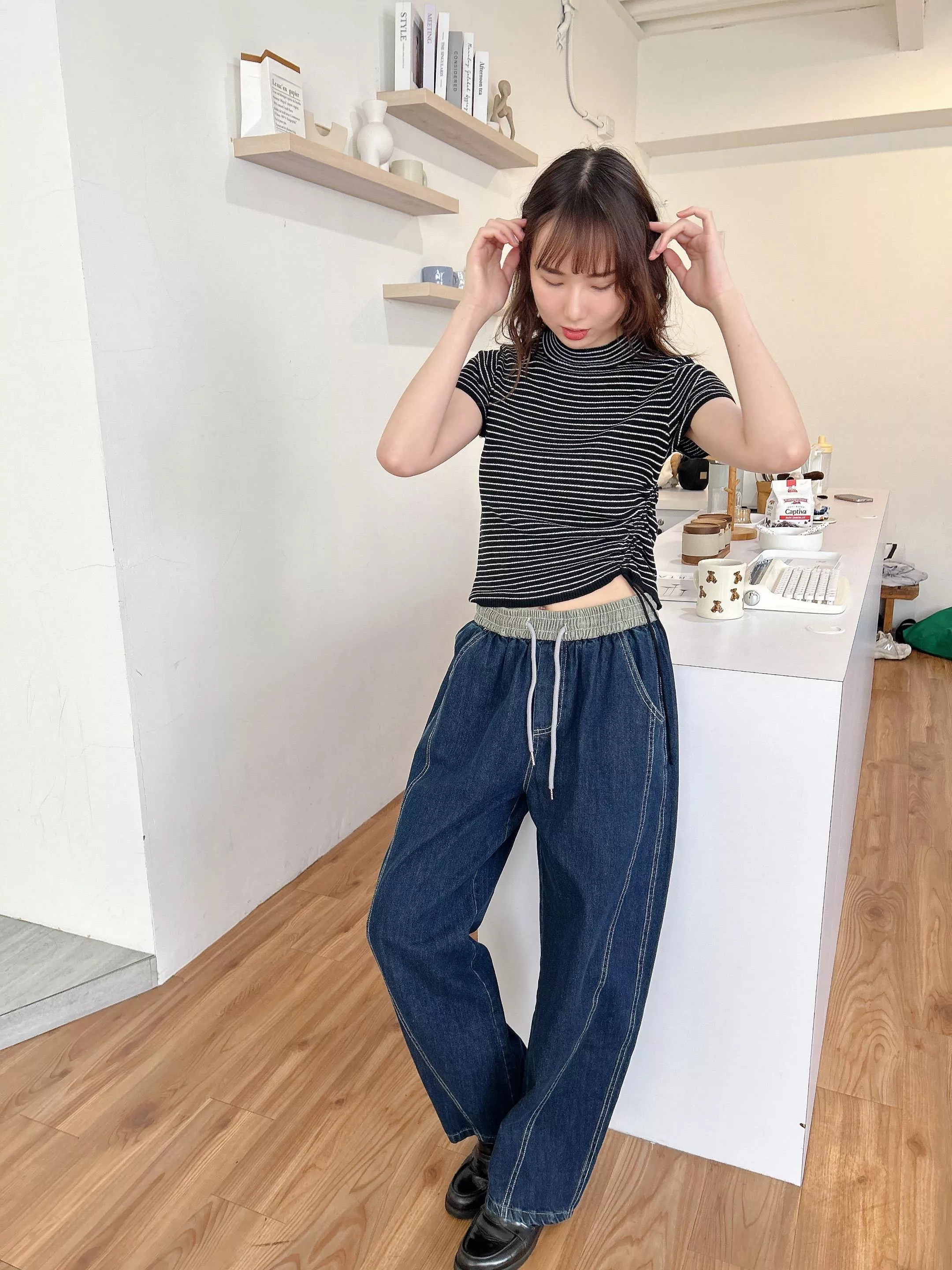 彈性鬆緊褲頭 抽繩綁帶造型