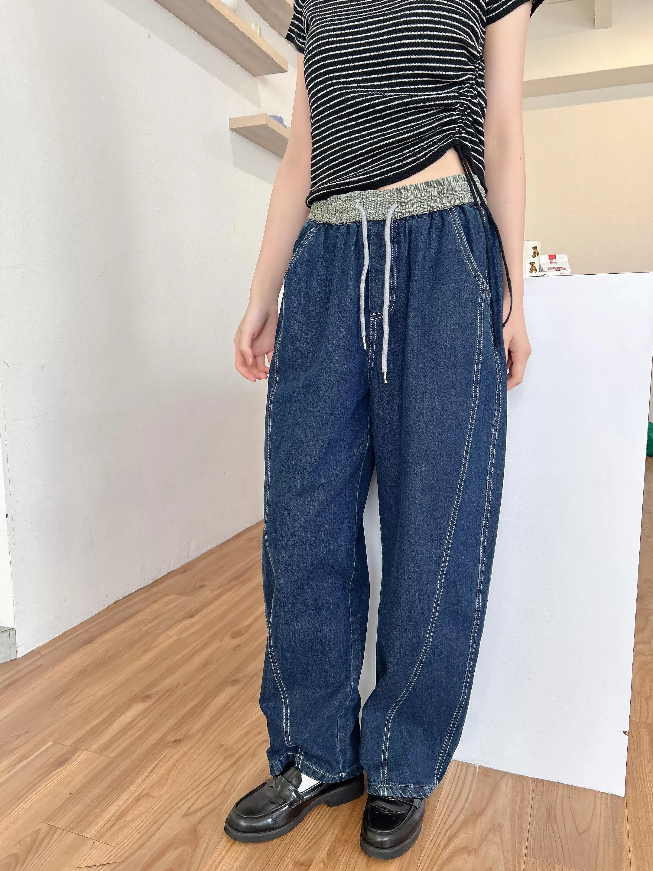 時髦車線滾邊 撞色褲頭設計