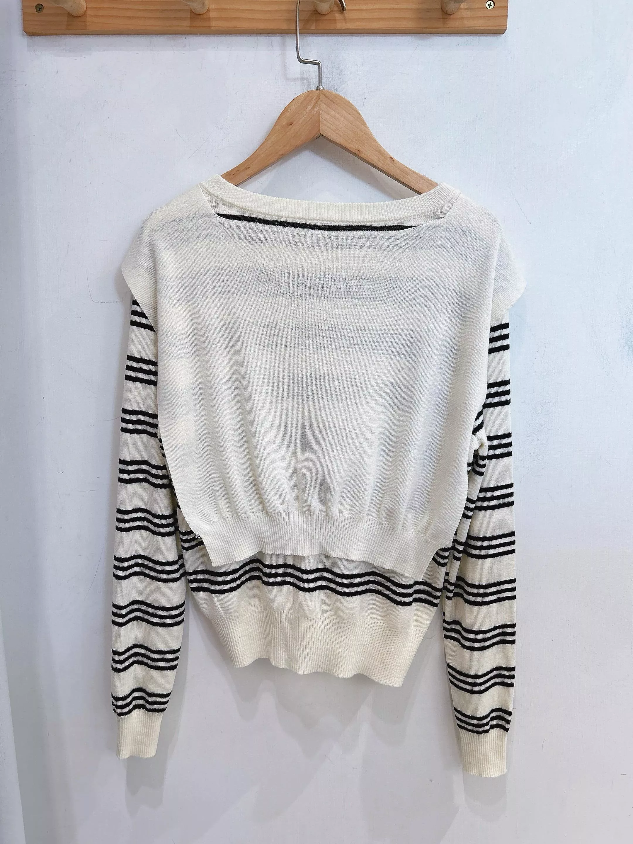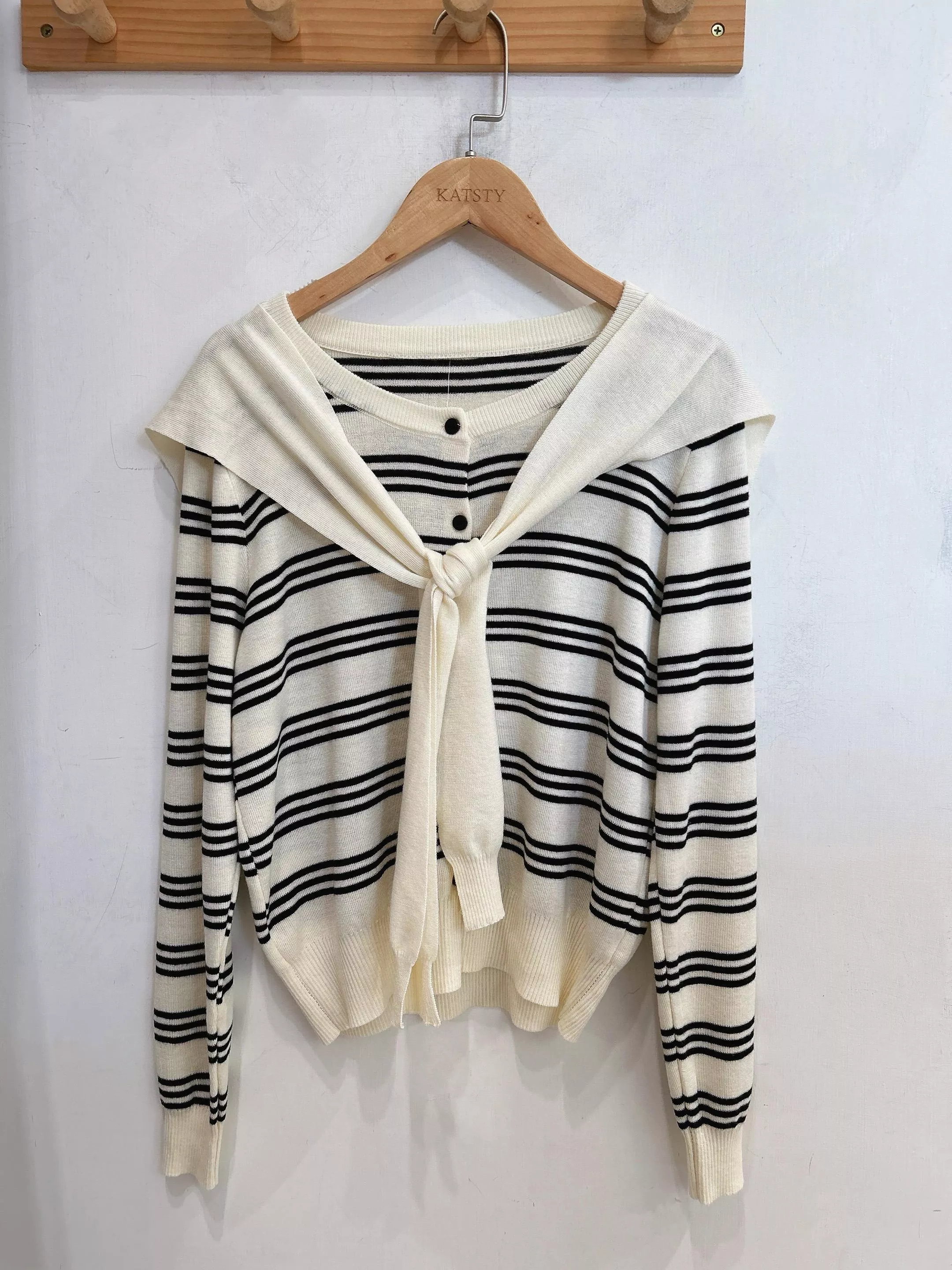 秋日提案條紋針織排釦衫附披肩