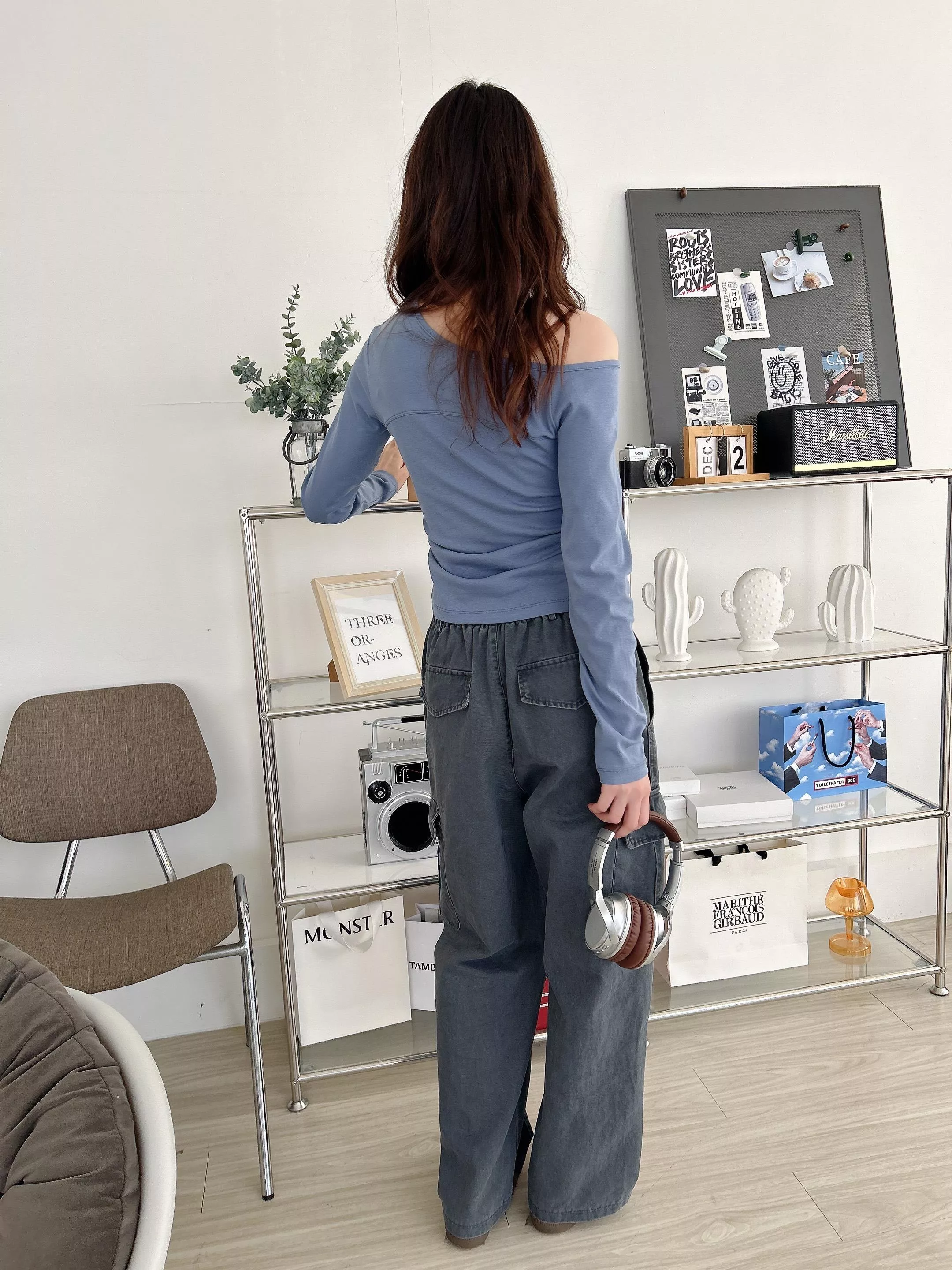 時髦漂亮水洗刷色 後鬆緊腰 S-L都能穿唷!