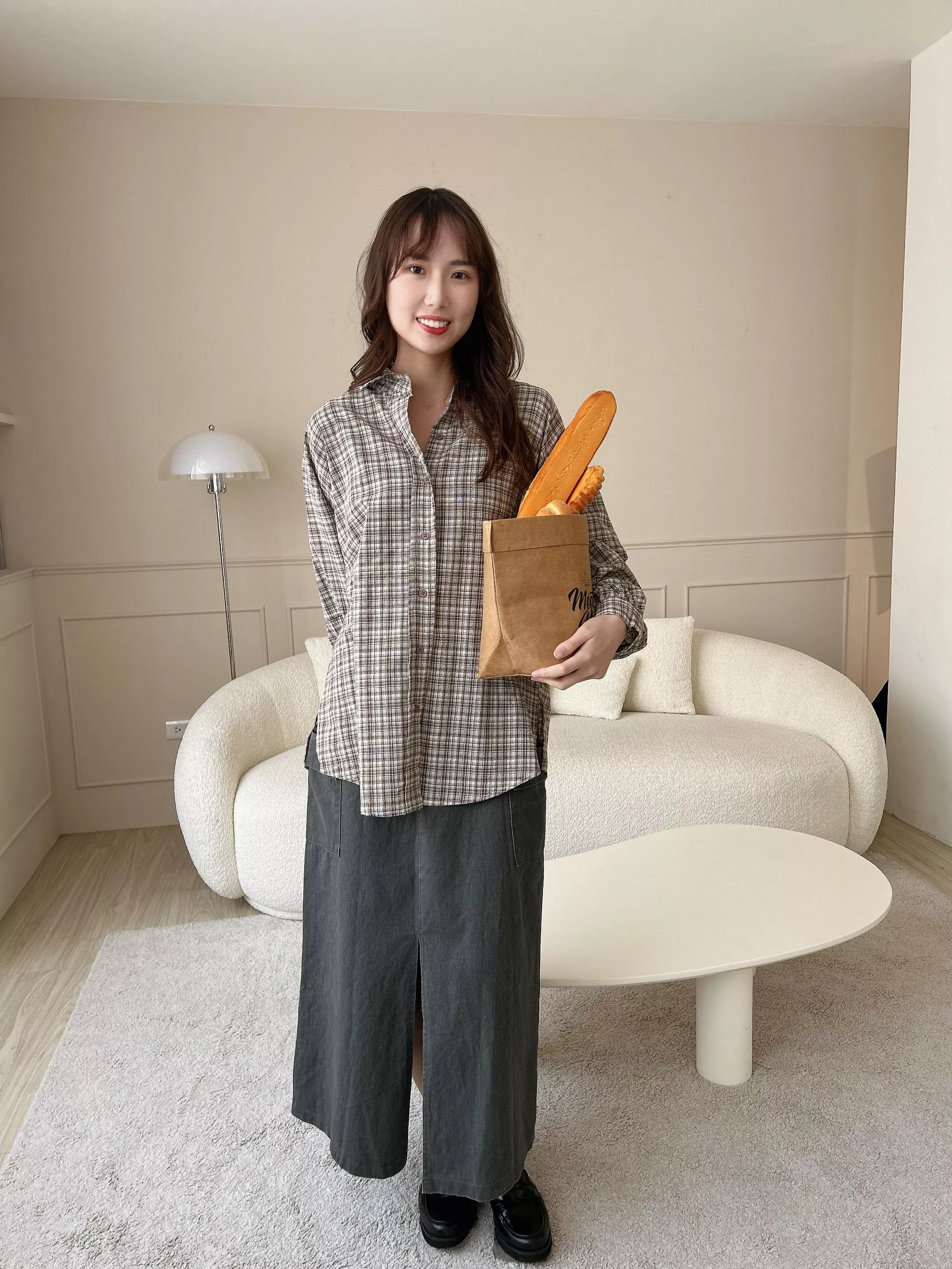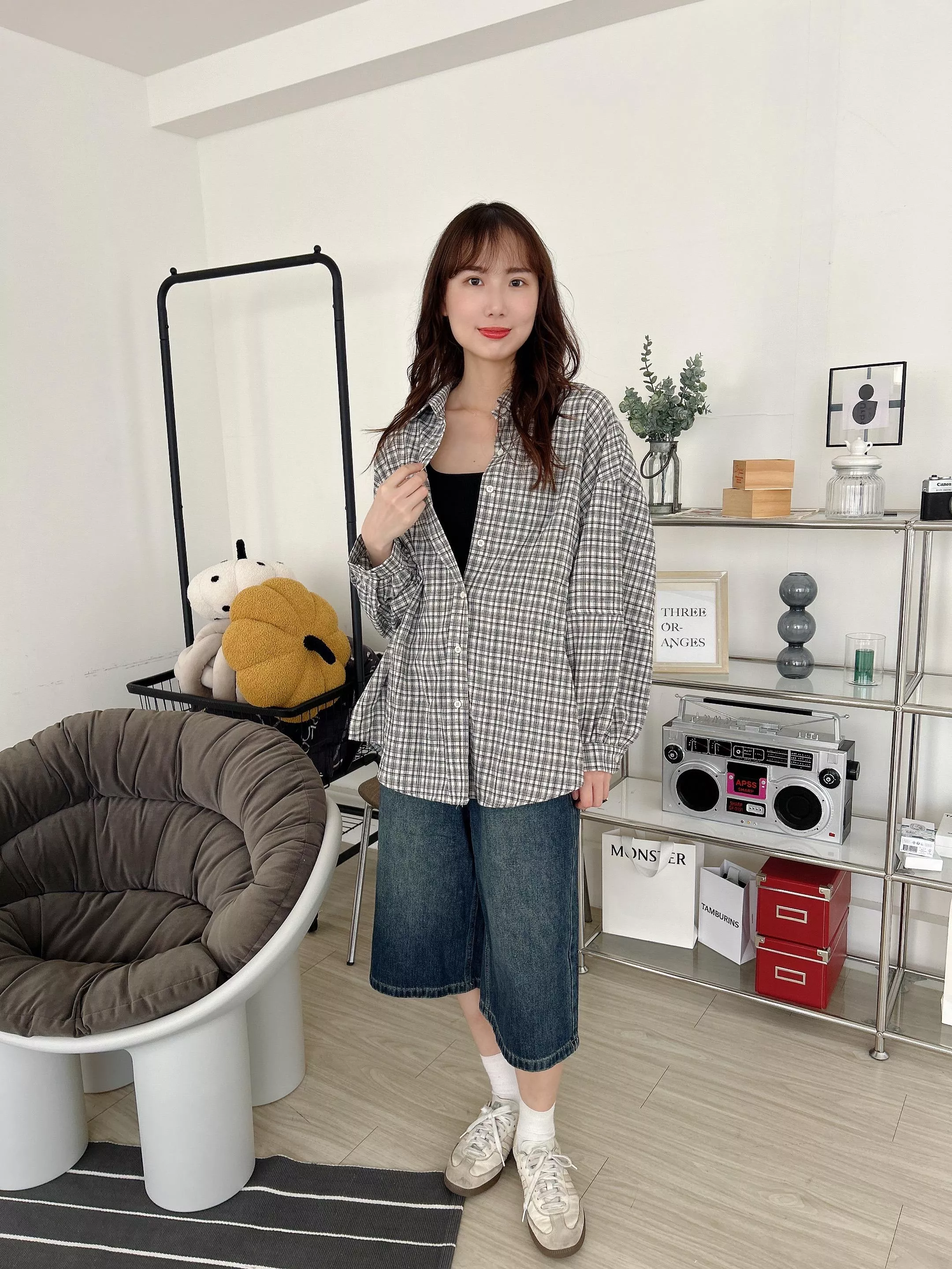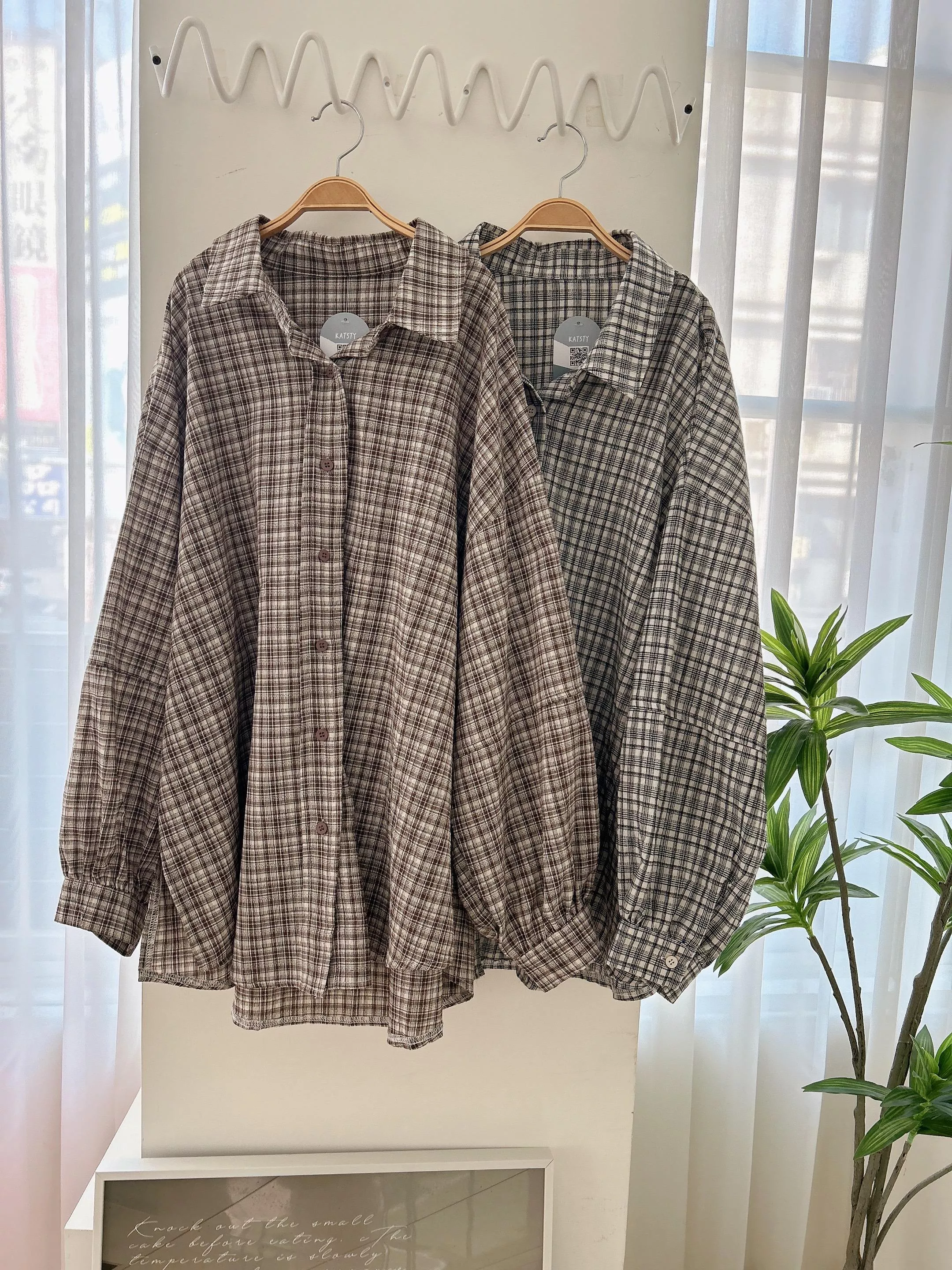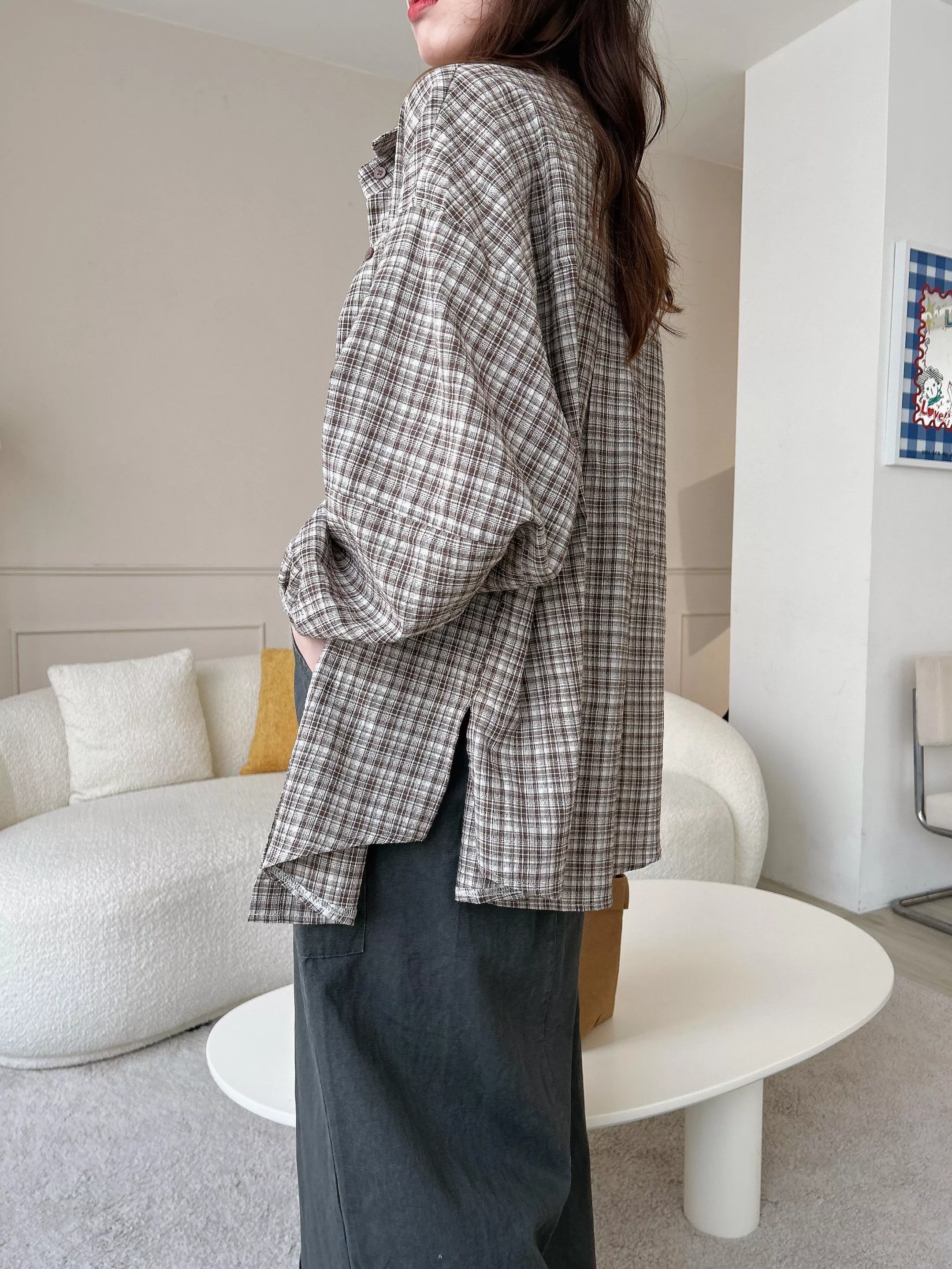男友感側開衩鬆餅格紋襯衫 (2色)