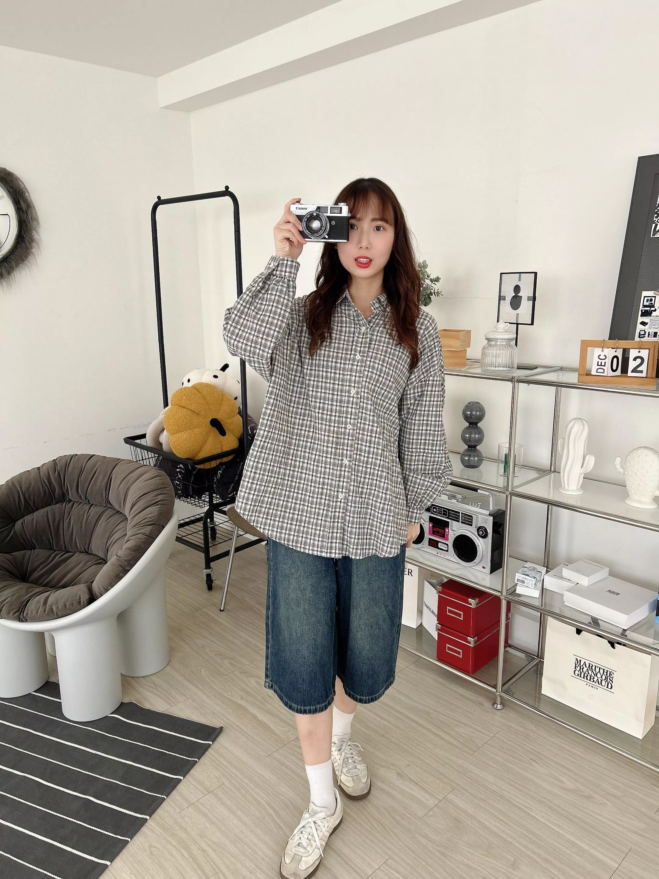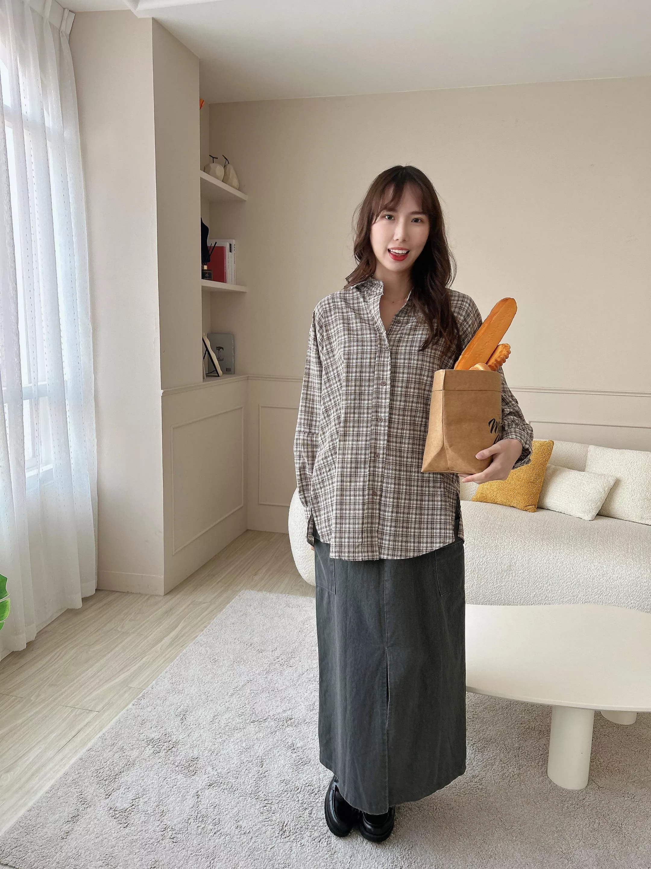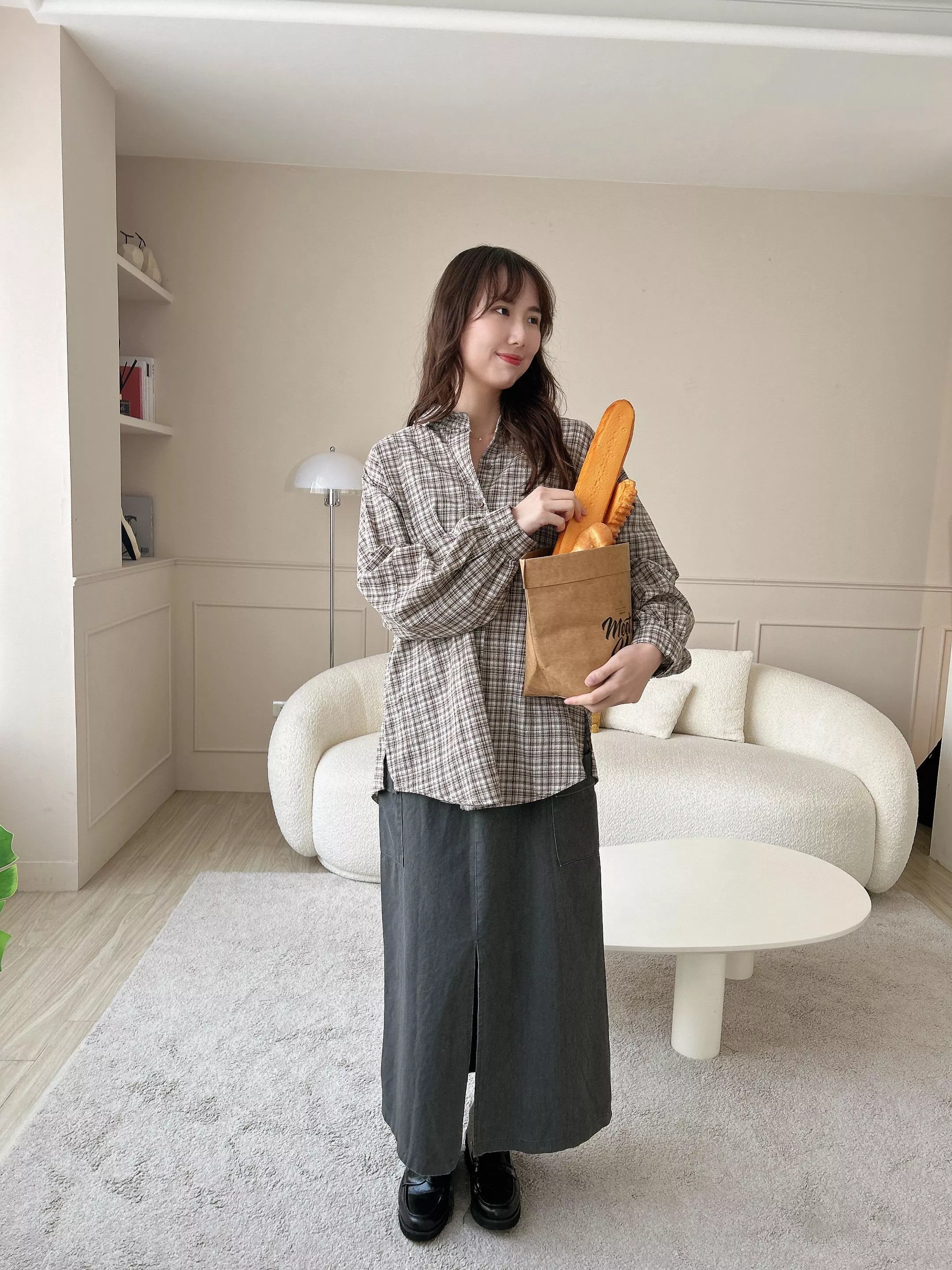 男友感側開衩鬆餅格紋襯衫 (2色)