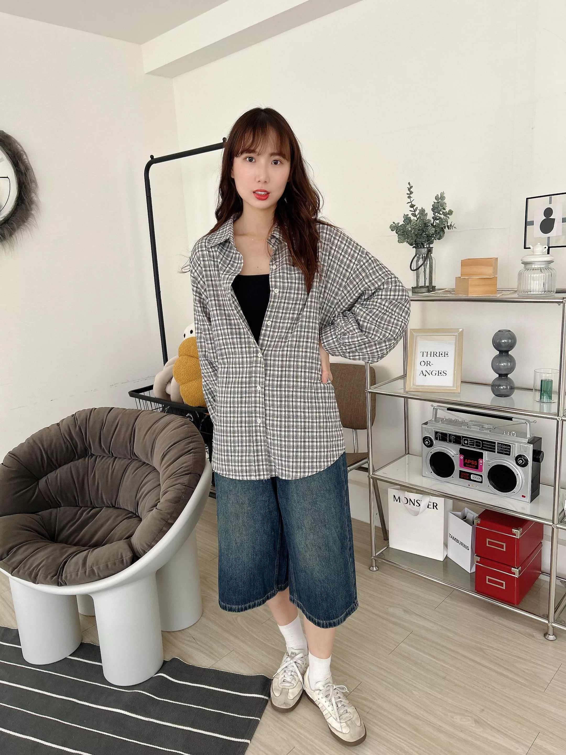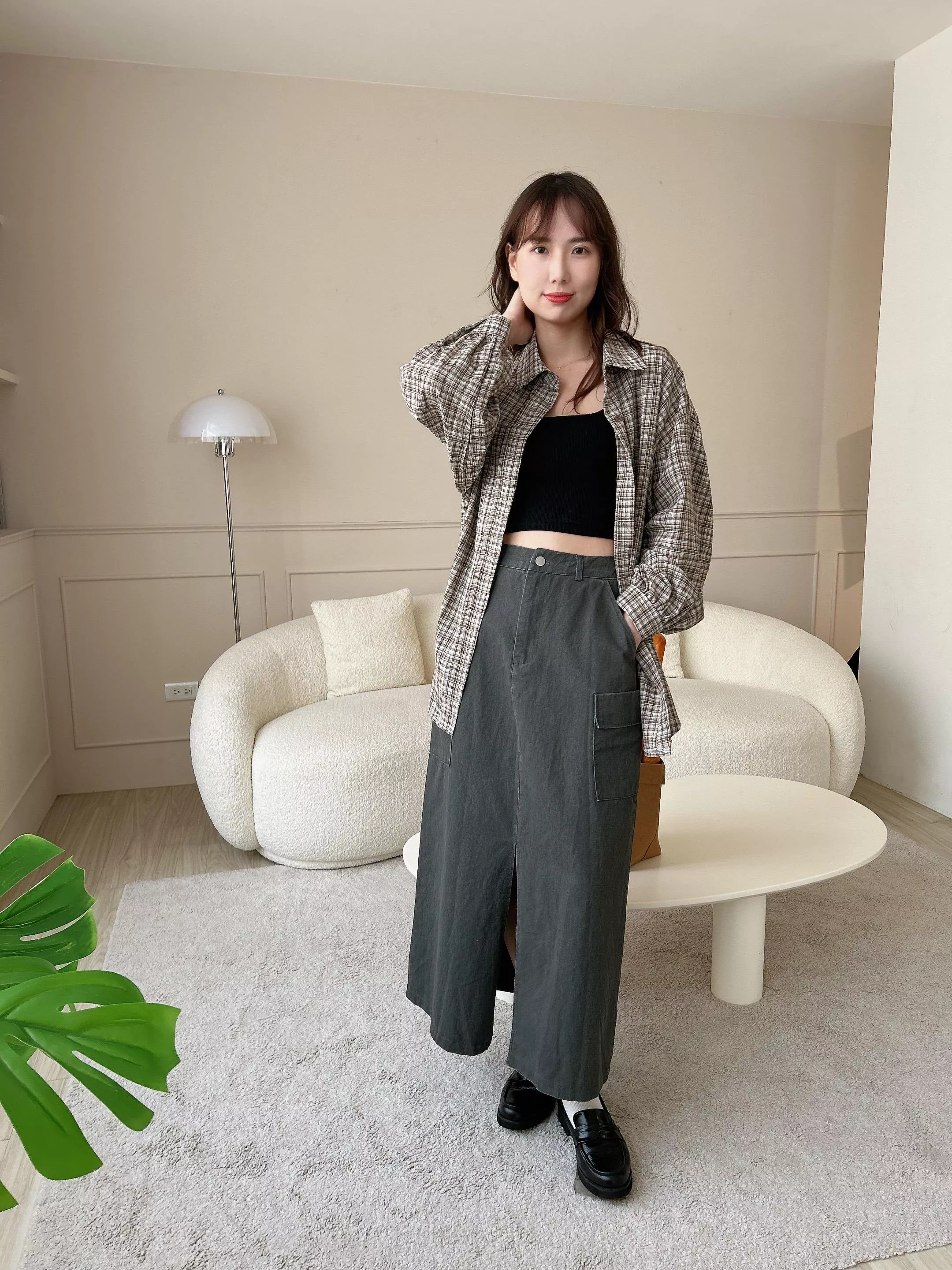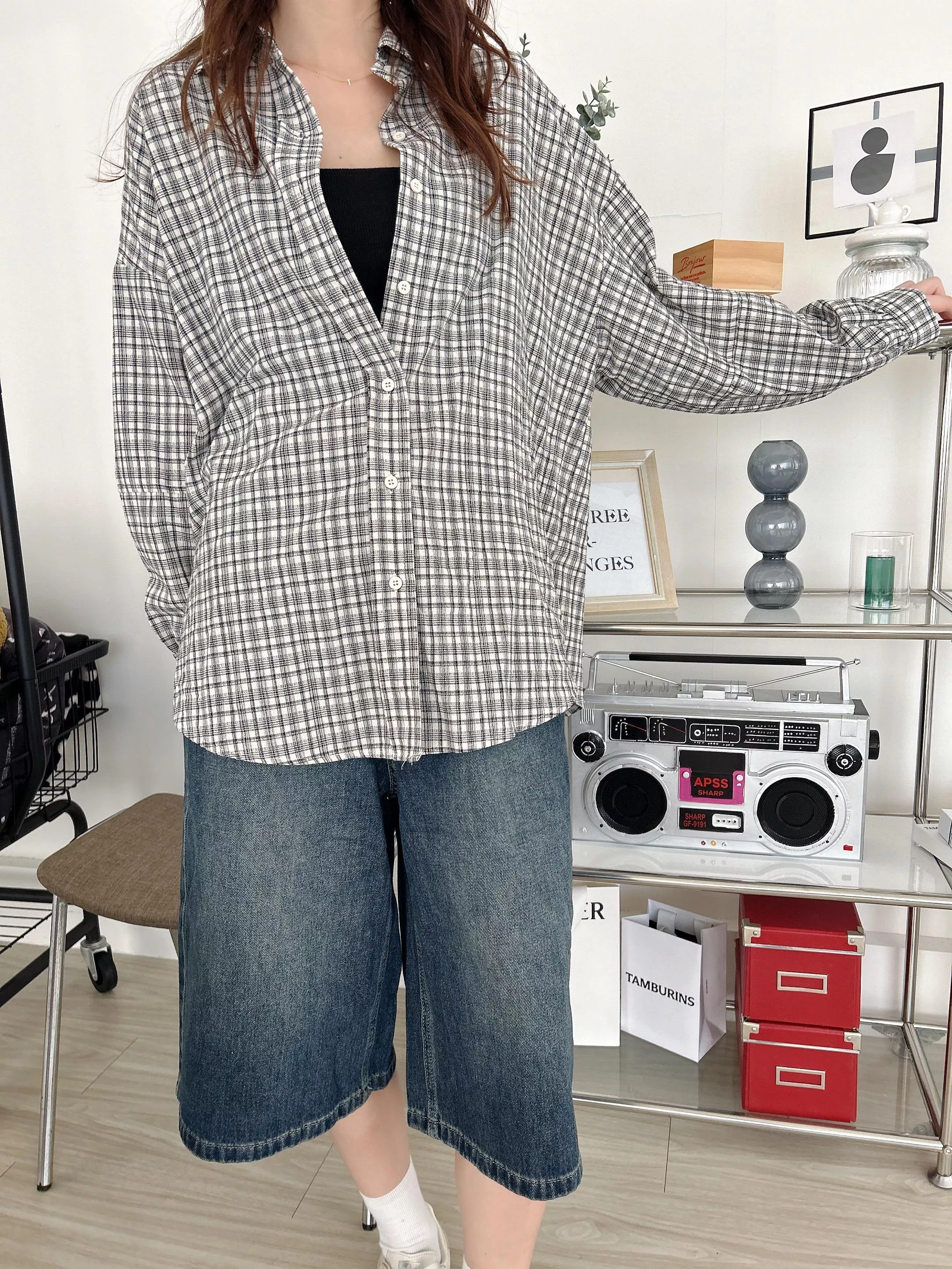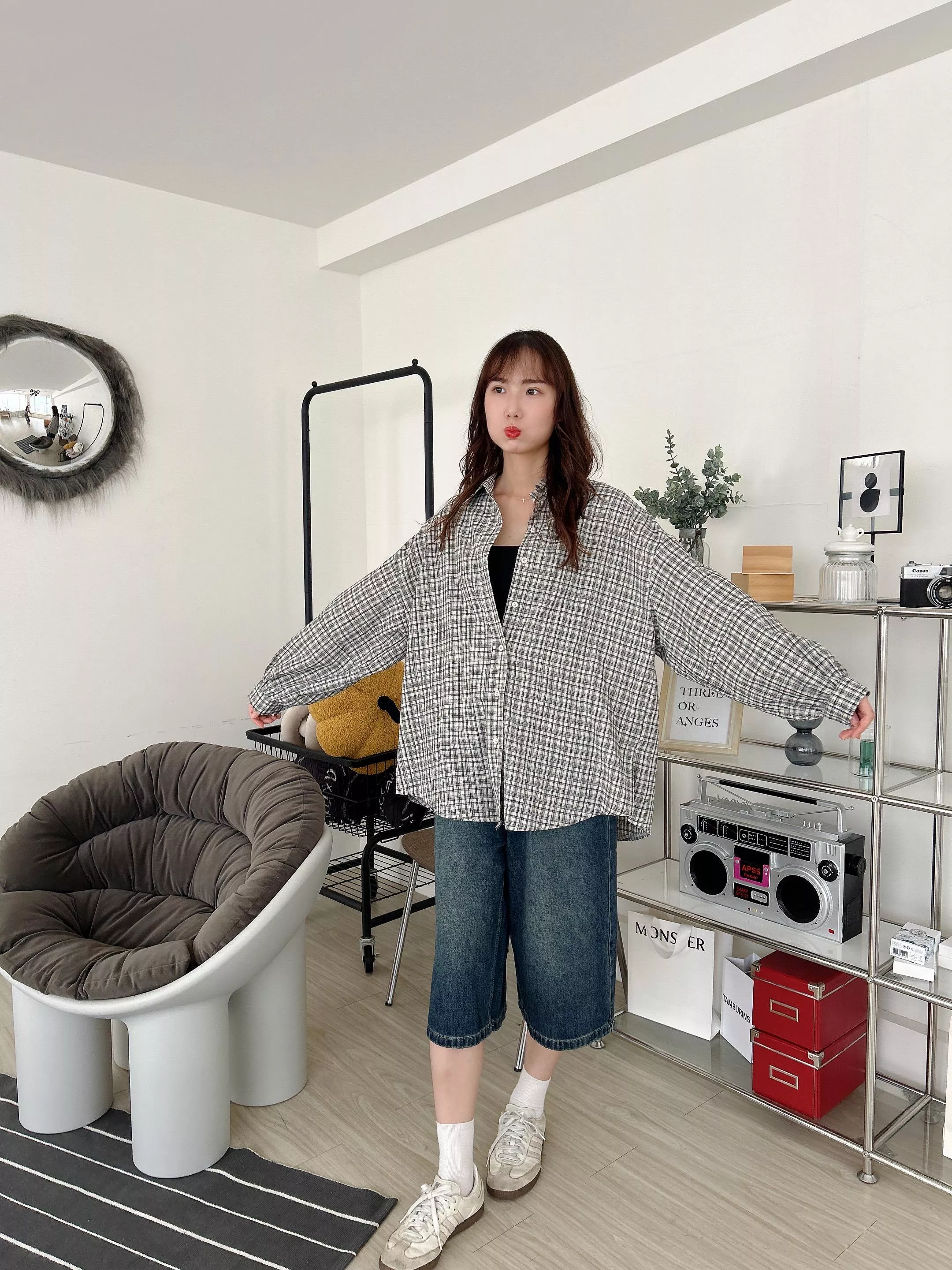 男友感側開衩鬆餅格紋襯衫 (2色)