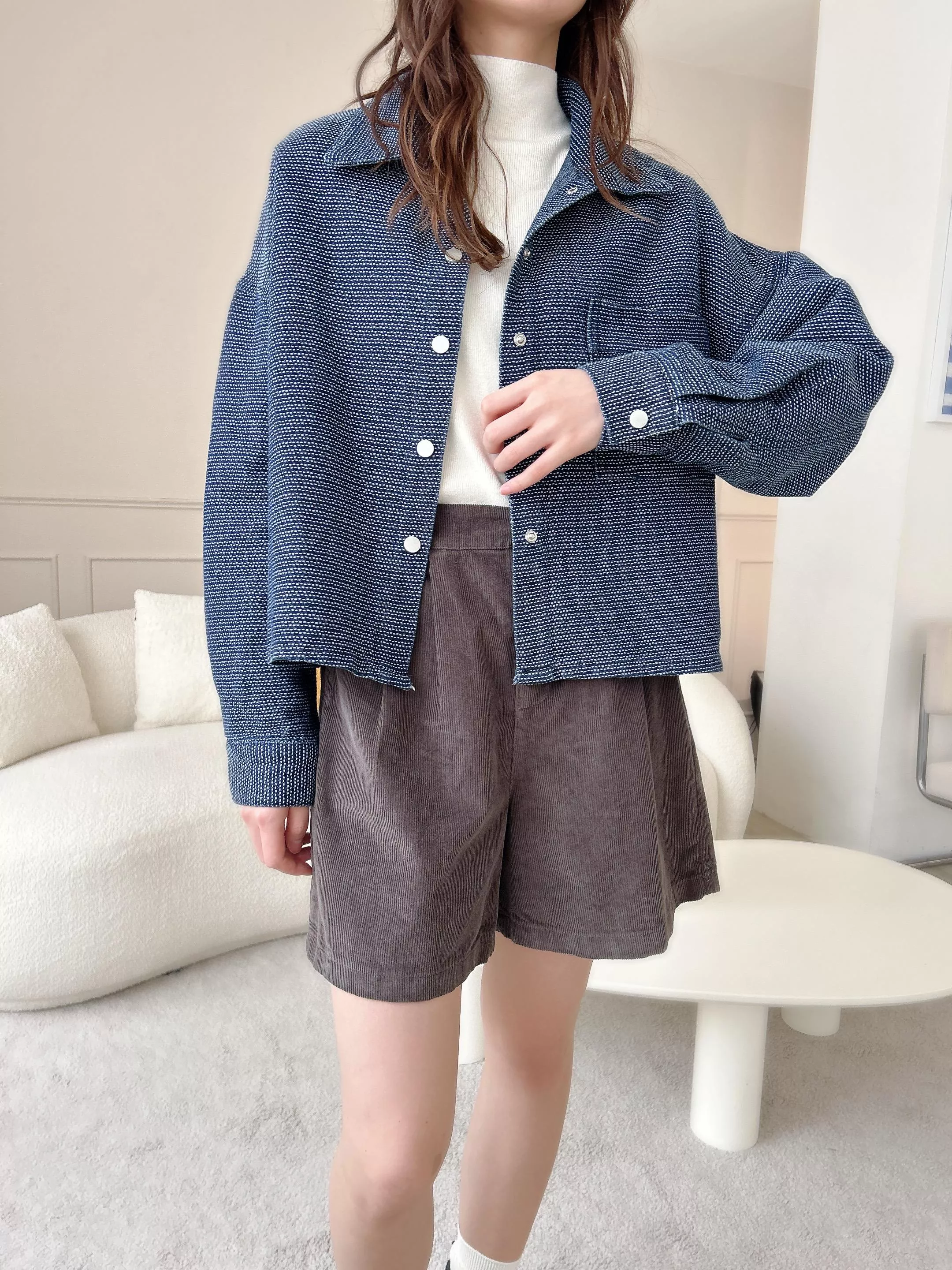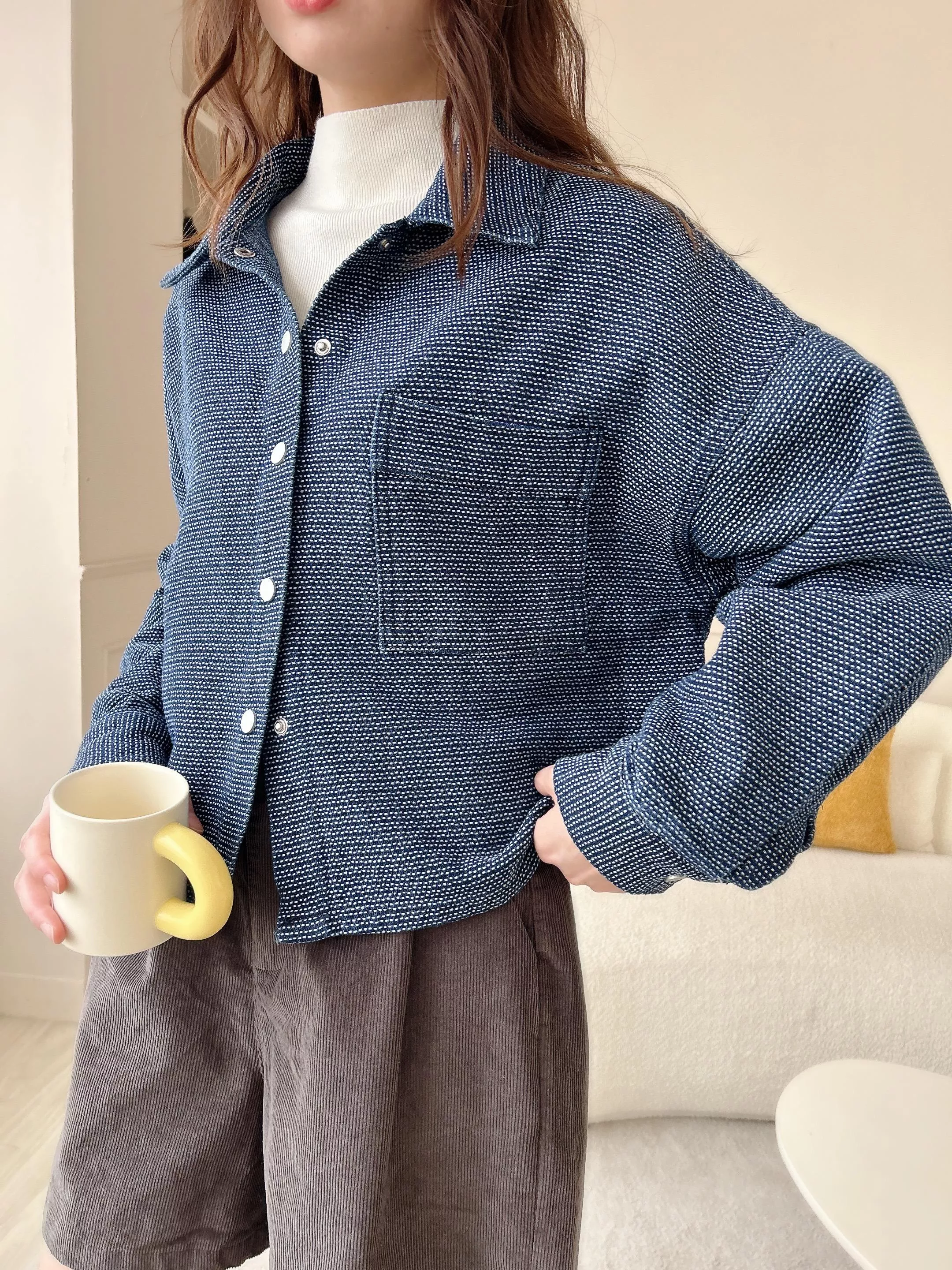 名媛小香風編織紋牛仔外套