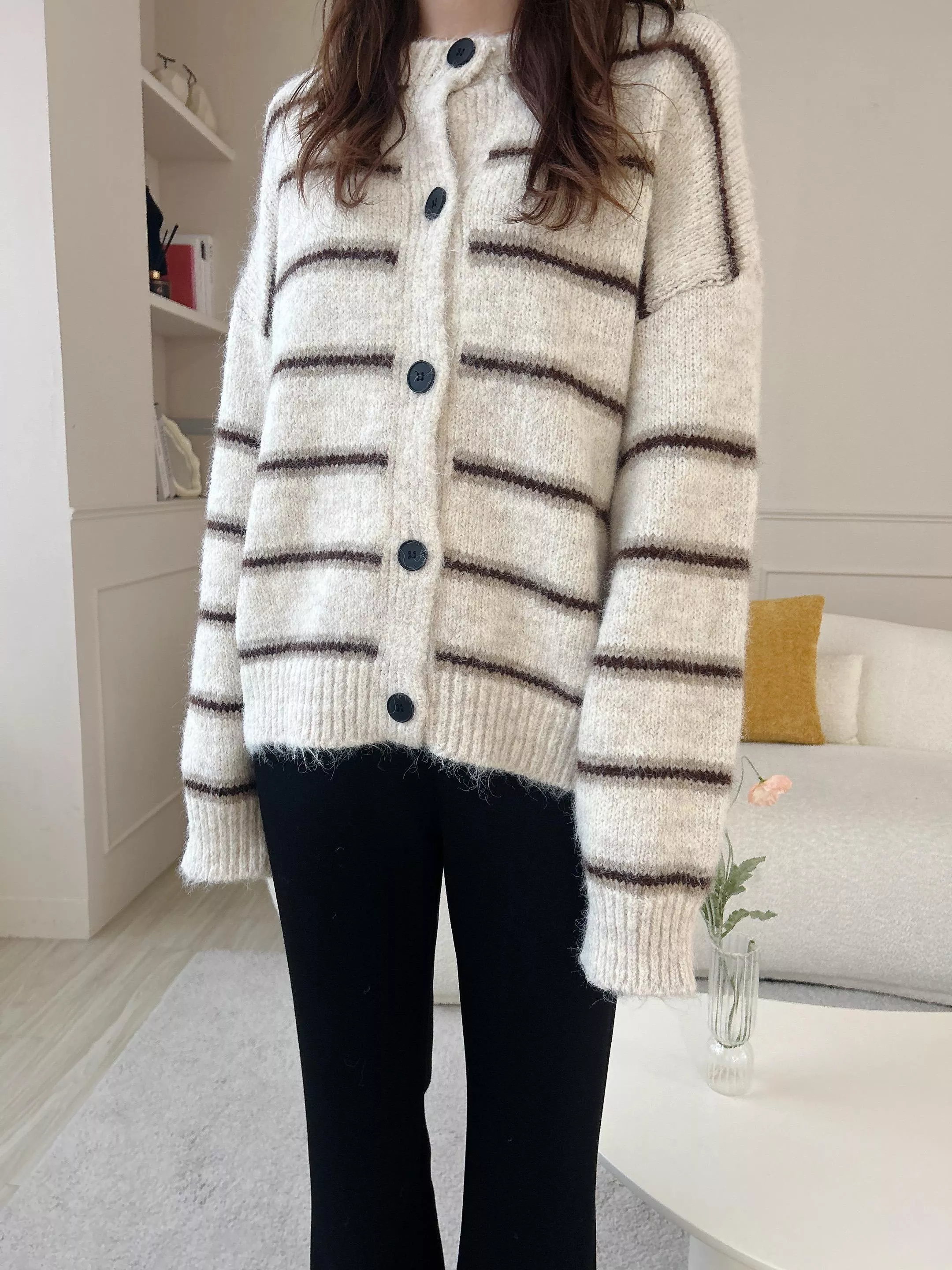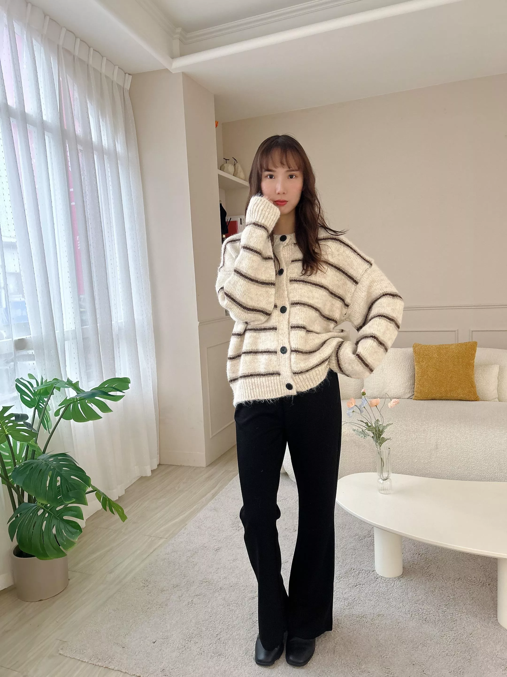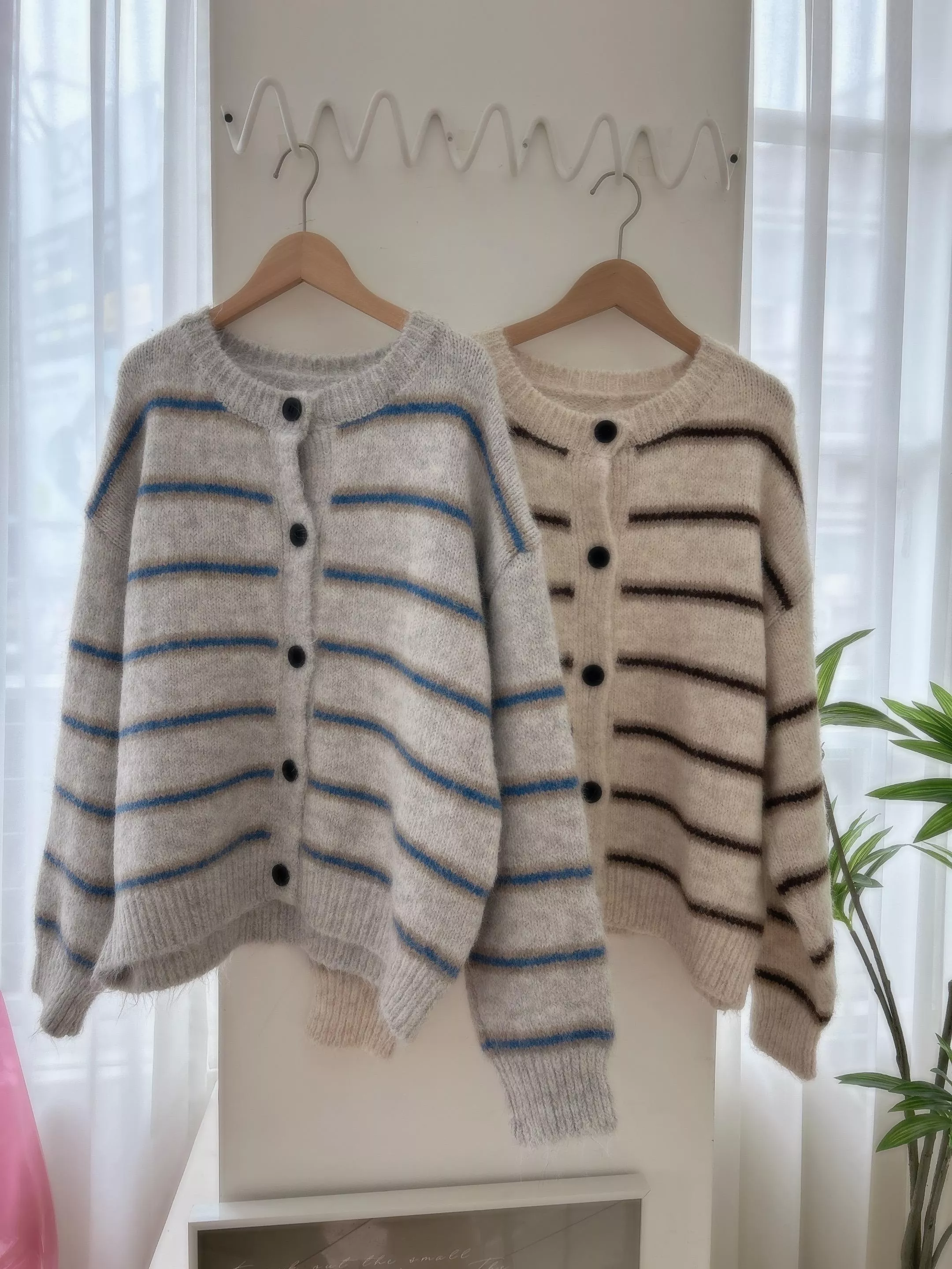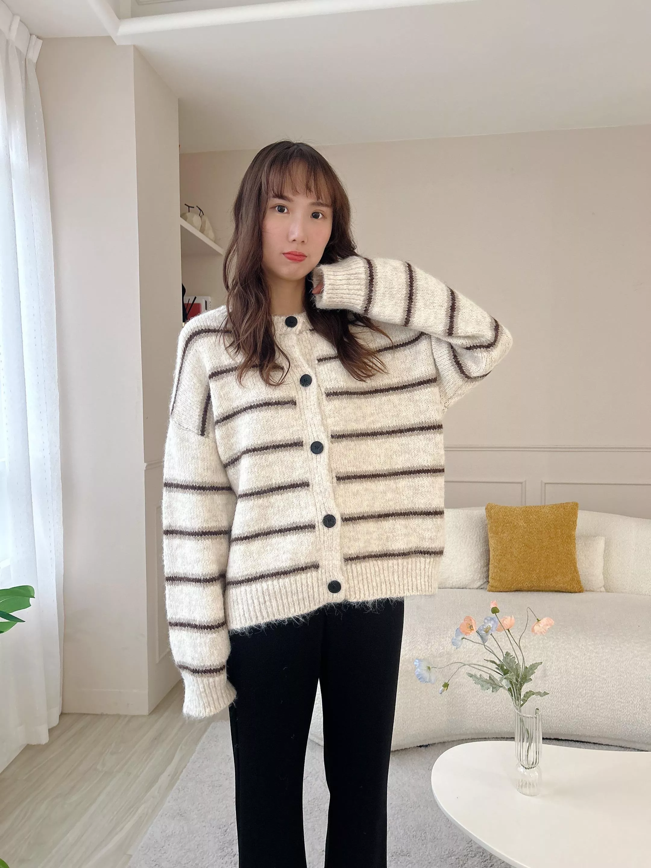 擁抱冬日排釦彩橫條毛衣外套 (2色)