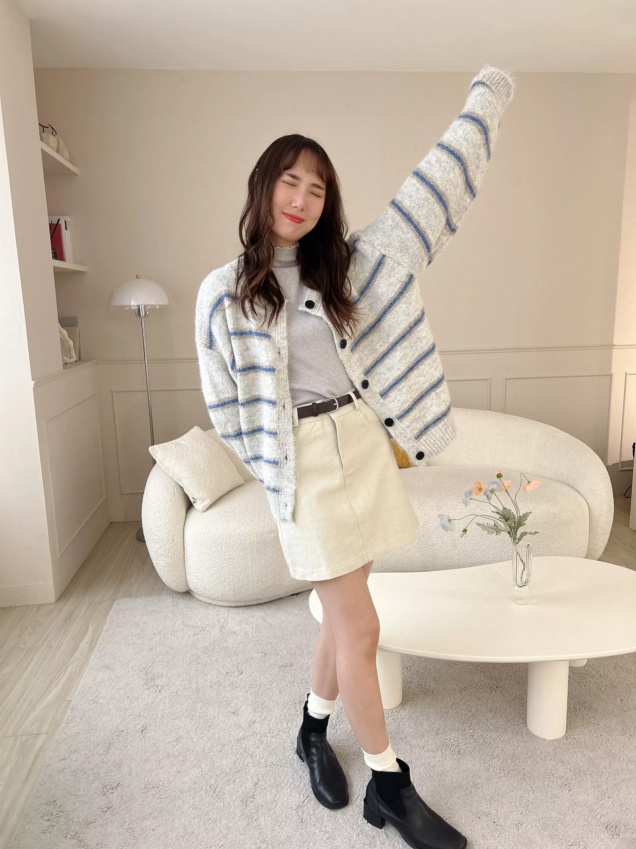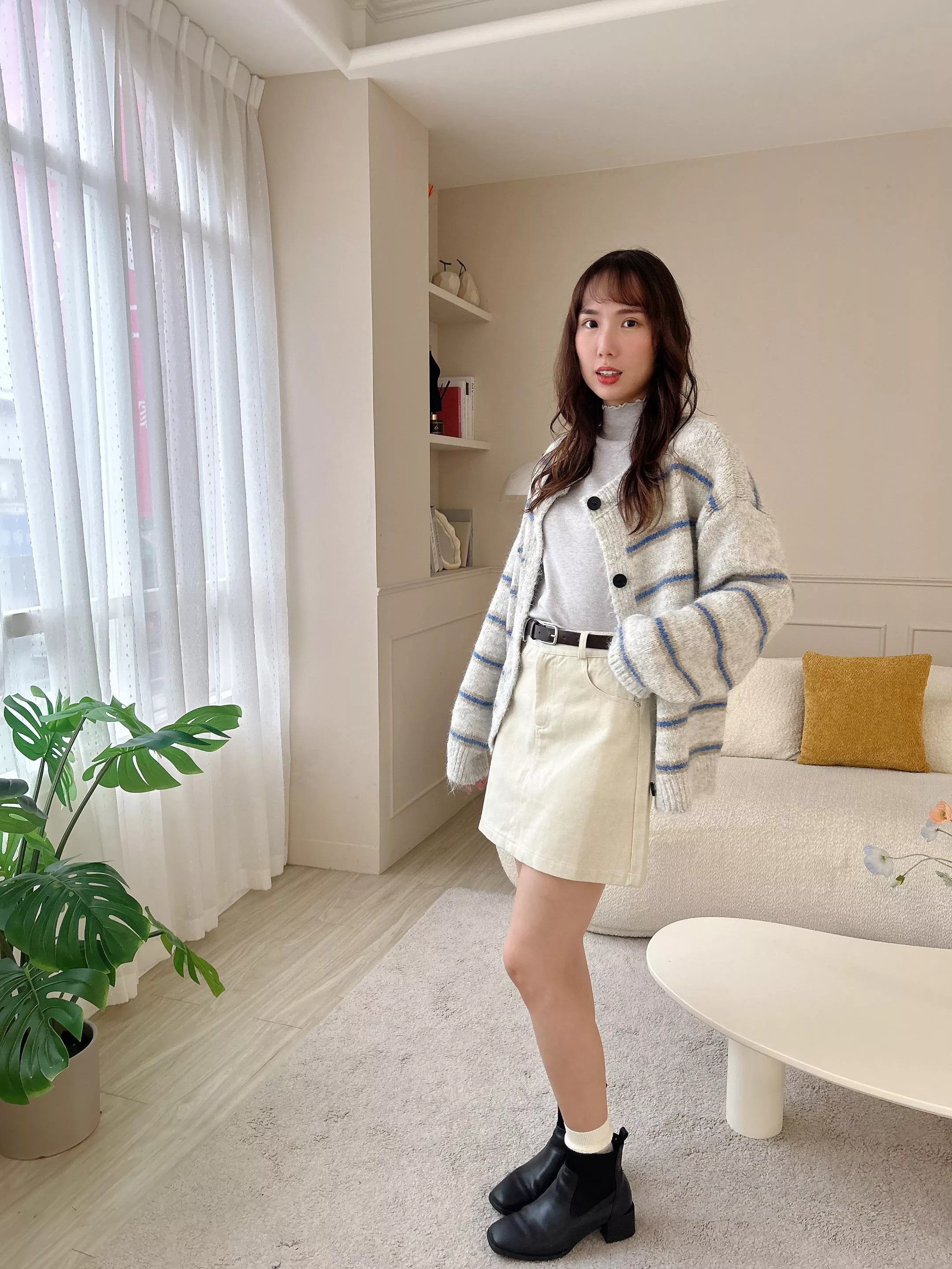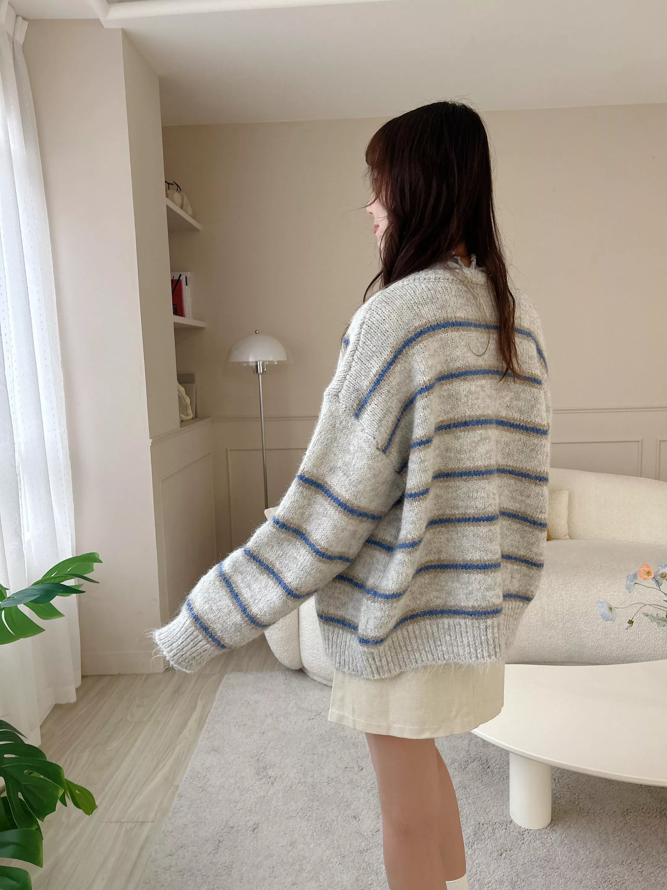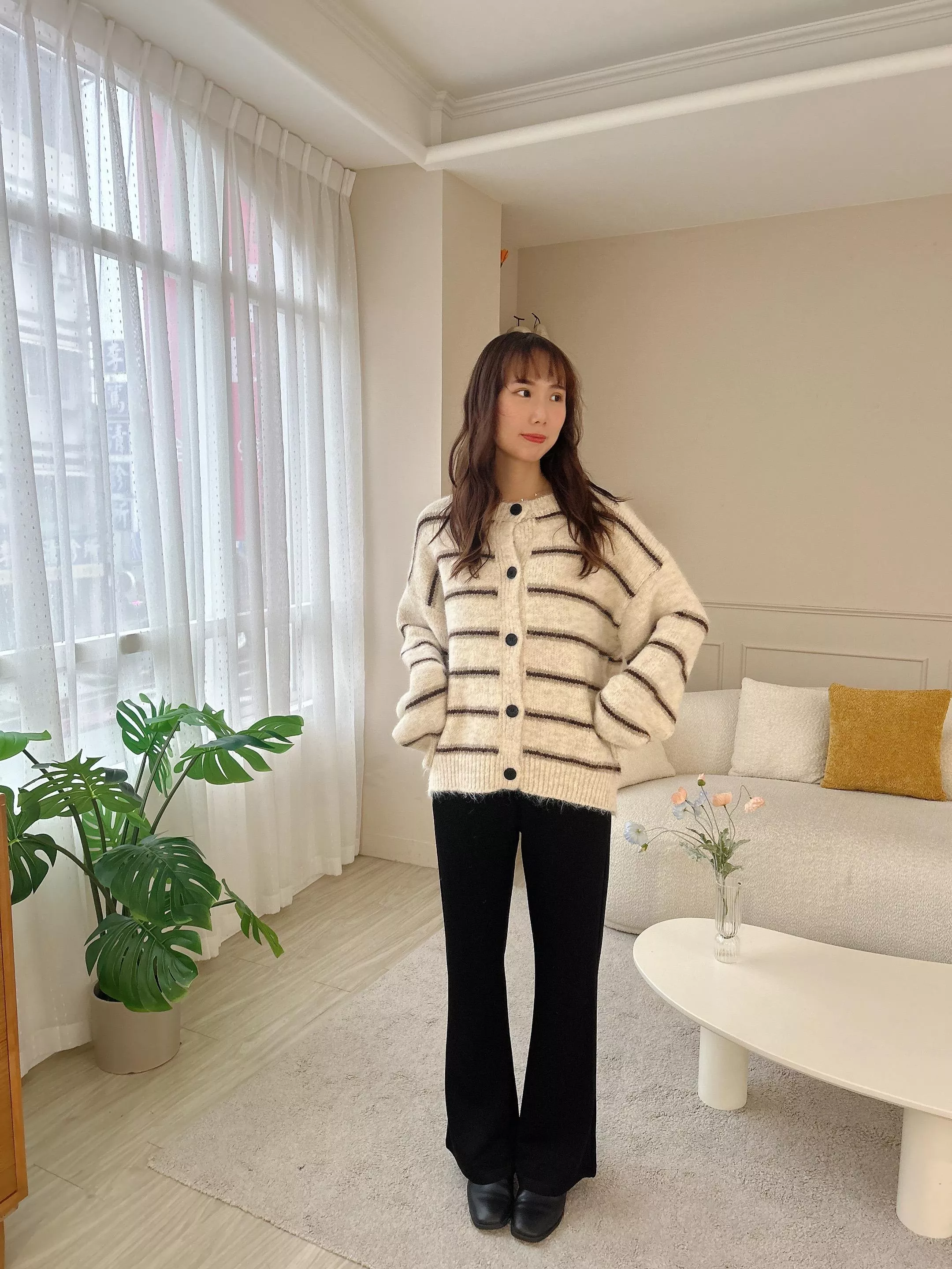 擁抱冬日排釦彩橫條毛衣外套 (2色)