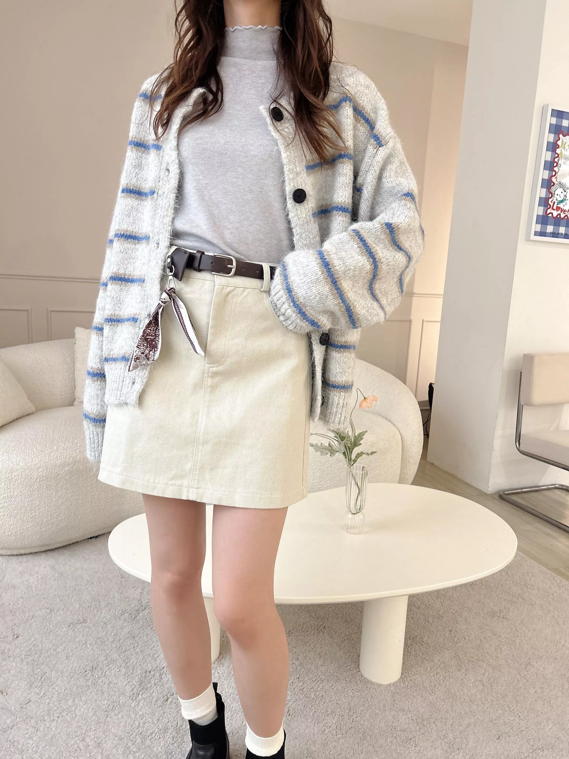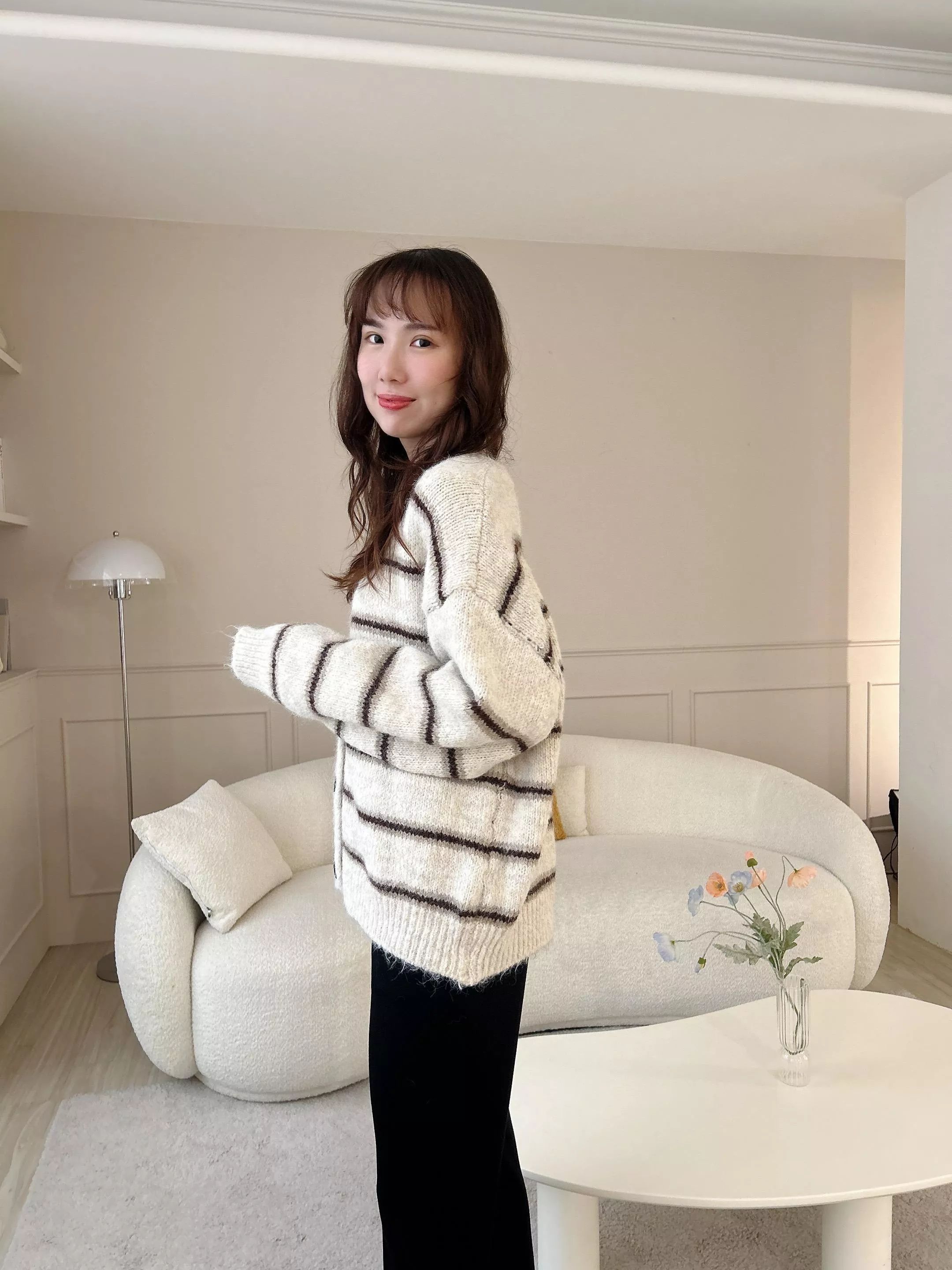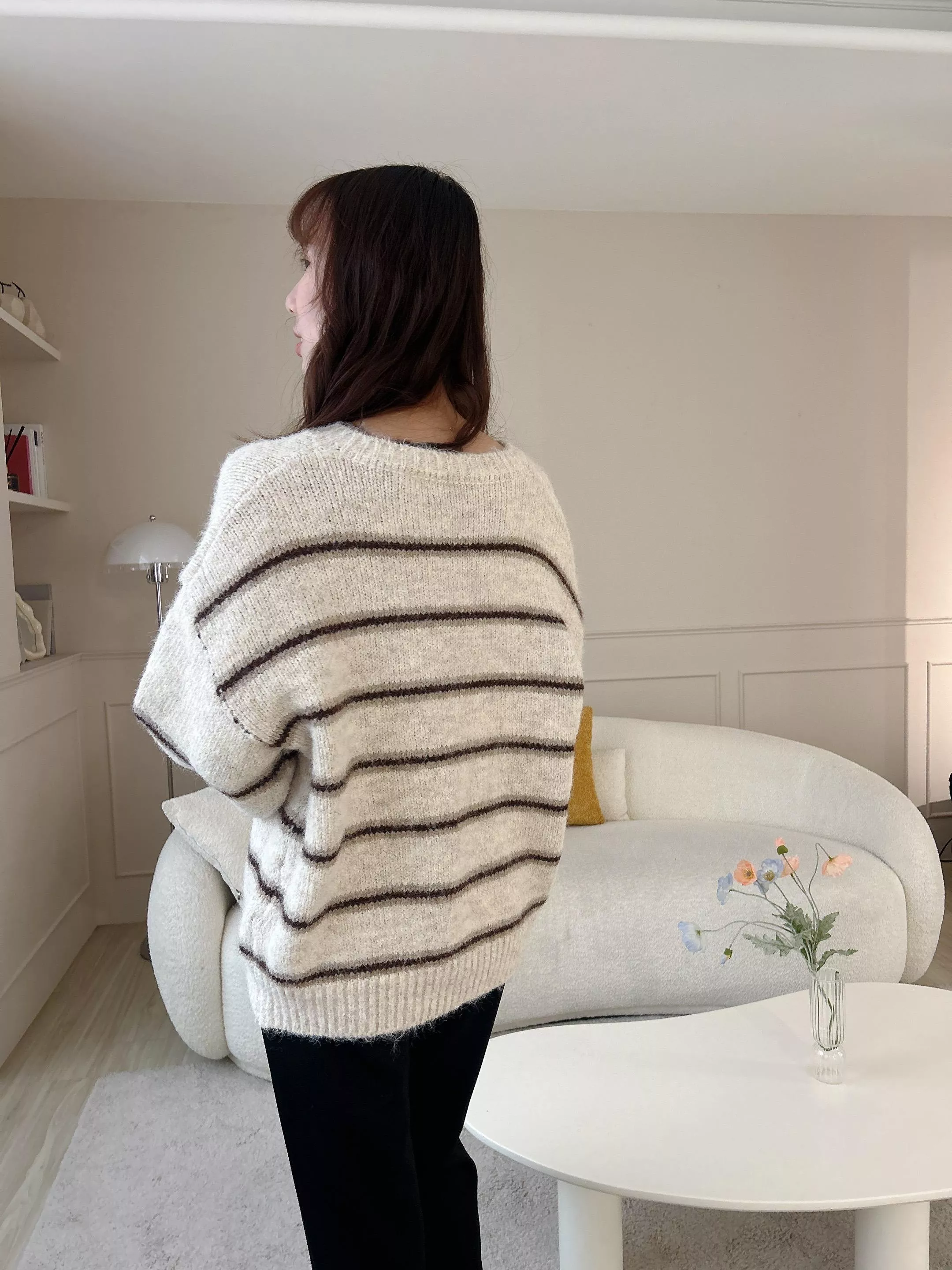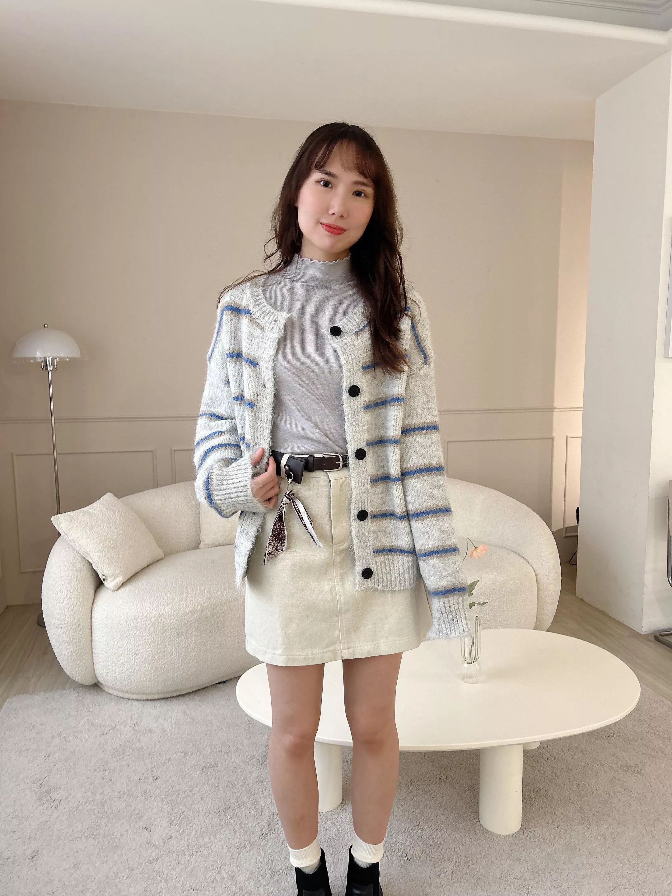 擁抱冬日排釦彩橫條毛衣外套 (2色)
