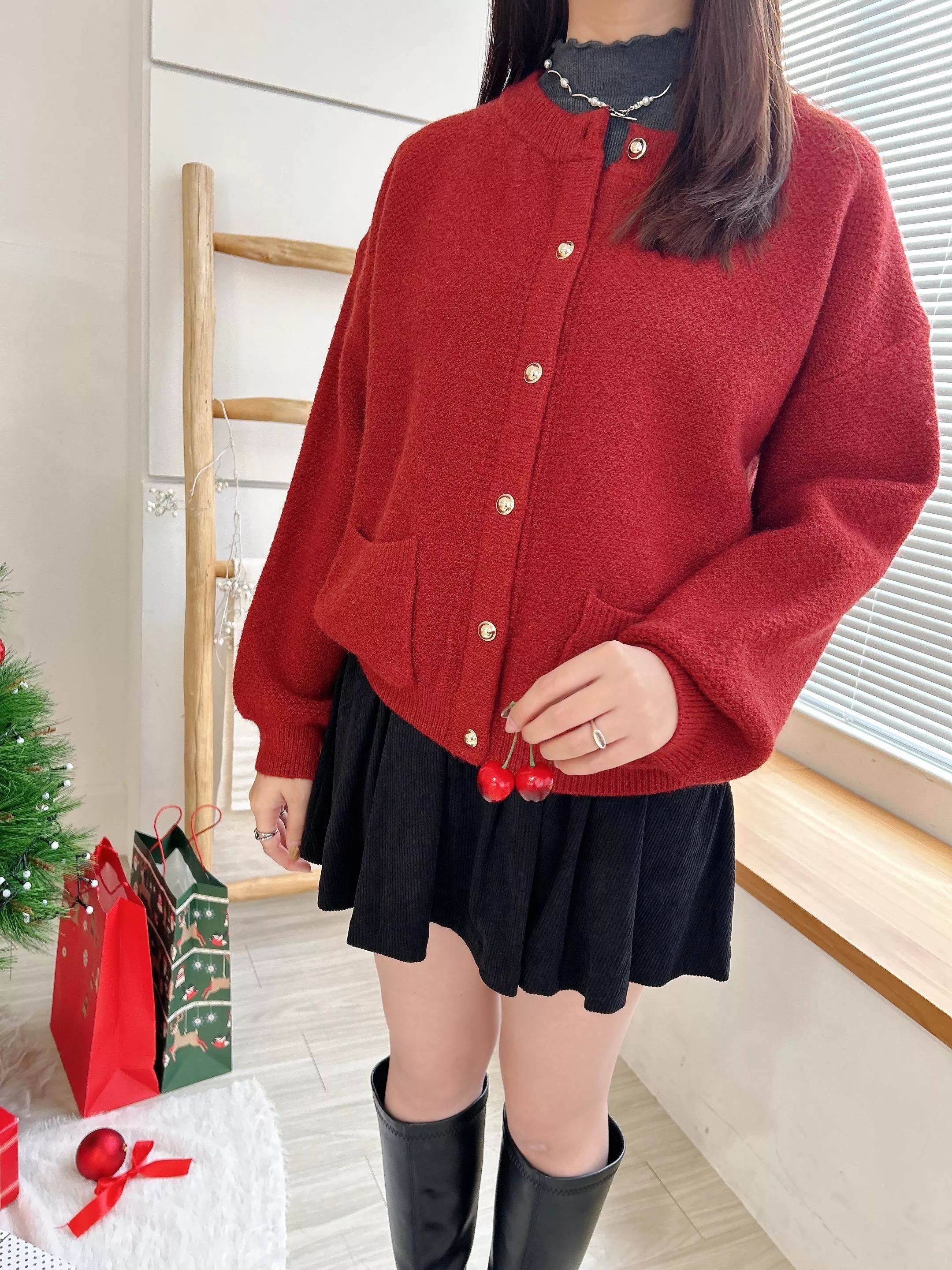 聖誕穿搭提案圓領毛衣外套 (3色)